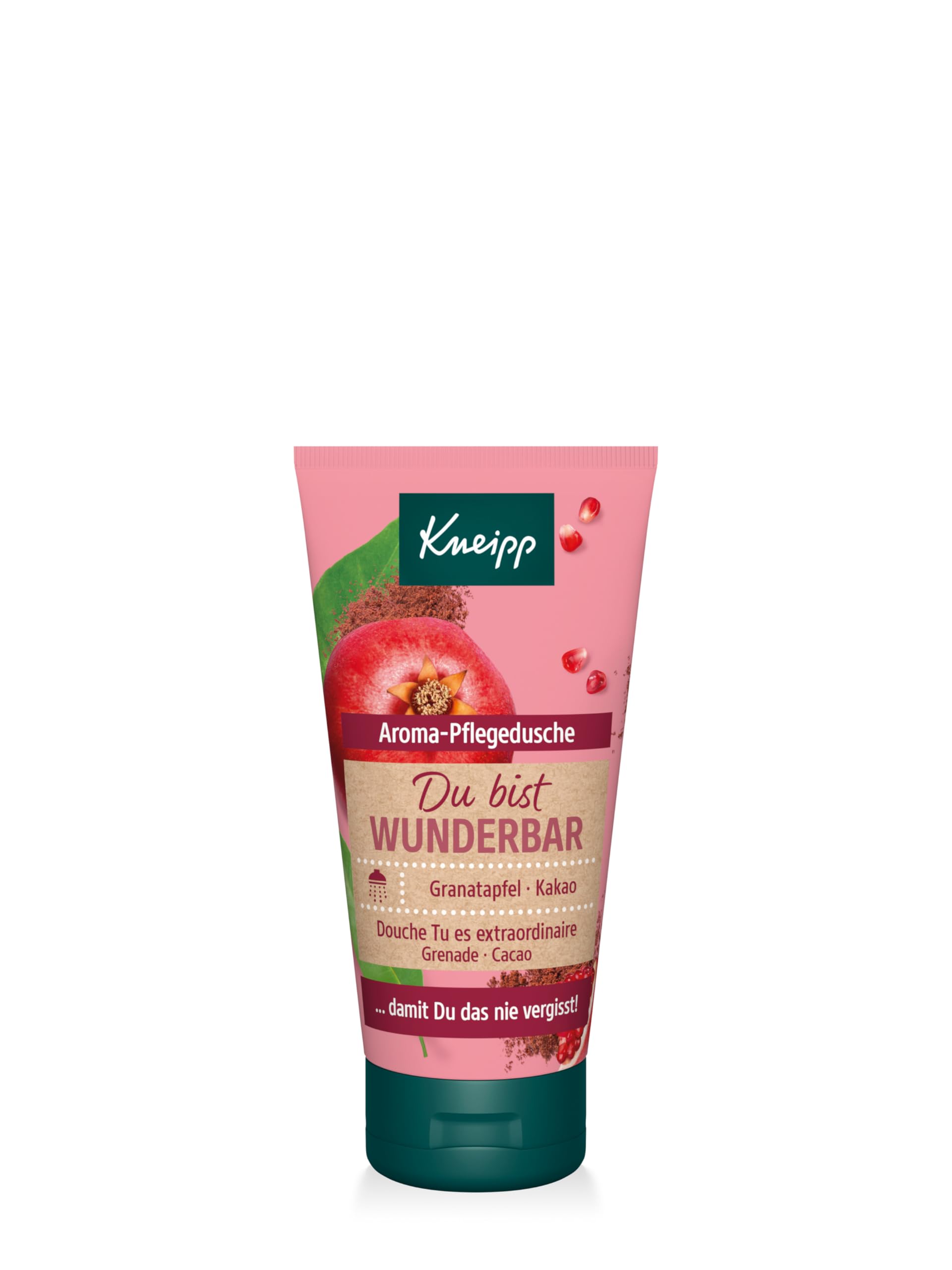 Kneipp Aroma Shower Gel is wonderful for you. With precious extracts of pomegranate and cocoa, it reminds us of what we should tell ourselves much more often. Enjoy your well-deserved moment of well-being with a fruity fragrance and natural nourishing oil. It's a pleasure to experience. The shower gel's plant-based formula improves the feeling of your skin during and after showering. Its formula with natural nourishing oil preserves and maintains the skin's natural microbiome, leaving skin feeling soft and supple. A scientific study confirms that skin hydration is preserved during use. Narrow cap – less plastic (compared to the previous tube). Microplastic-free formula. 98 biodegradable ingredients (according to OECD or equivalent methods). Vegan. INGREDIENTS Aqua (Water), Sodium Laureth Sulfate, Glycerin, Cocamidopropyl Betaine, Coco-Glucoside, PEG-18 Glyceryl Oleate Cocoate, PEG-40 Sorbitan Peroleate, Glyceryl Oleate, Parfum (Fragrance), Prunus Amygdalus Dulcis (Sweet Almond) Oil, Punica Granatum Pericare P Extract, Theob. Roma Cacao (Cocoa) Seed Extract, Citronellol Aurantium (Orange) Seed Oil, Litsea Cubeba Fruit Oil, Piper Nigrum (Pepper) Fruit Oil, Limonene, Eugenol, Benzyl Alcohol, Citral, Sodium Levulinate, Sodium Anisate, Glycol Distearate, Sodium Chloride, Citric Acid. CID, hydroxypropyl methylcellulose, PEG-14M, sodium hydroxide, silica, glycine (soybean) oil, hydrogenated palm glyceride citrate, tocopherol, CI 42090, CI 14700. SAFETY WARNING Cosmetic product. Keep out of reach of children. See morePreserves and maintains the skin's natural microbiome. Microplastic-free formula. Maintains skin's moisture. Fruity fragrance and natural nourishing oil. With precious extracts of pomegranate and cocoa.Kneipp Douche de soin aromatique « Du bist wunderbar » - Avec des extraits précieux de grenade et de cacao - Format voyage - 50 mlDESCRIPTION DU PRODUIT DESCRIPTION DU PRODUIT La douche de soin Kneipp Aroma vous est merveilleuse avec de précieux extraits de grenade et de cacao nous rappelle ce que nous devrions nous dire beaucoup plus souvent. Profitez de votre moment de bien-être bien mérité avec un parfum fruité et une huile nourrissante naturelle. C'est agréable que cela vous offre. La douche à la formule de soin végétale améliore la sensation de la peau pendant et après la douche. Sa formule à l'huile nourrissante naturelle préserve et préserve le microbiome naturel de la peau et procure une sensation de douceur et de souplesse sur la peau. Une étude scientifique confirme que l'hydratation de la peau est préservée lors de l'utilisation. Couvercle étroit – moins de plastique (par rapport au tube précédent). Formule sans microplastique. 98 d'ingrédients biodégradables (selon OCDE ou méthodes équivalentes). Végétalien. INGRÉDIENTS Aqua (eau), laureth sulfate de sodium, glycérine, cocamidopropyl betaine, cocoglucoside, PEG-18 Glyceryl Oleate Cocoate, PEG-40 Sorbitan Peroleate, Glyceryl Oleate, Parfum (Fragrance), Prunus Amygdalus Dulcis (Sweet Almond) Oil, Punica Granatum Pericare. P Extract, Theob. extrait de graines de roma Cacao (Cocoa), huile de pépinière de citron aurantium (orange), huile de fruits Litsea Cubeba, huile de fruit Piper Nigrum (Pepper), limonene, eugénol, alcool benzyle, citral, levulinate de sodium, anisate de sodium, distearate de glycol, chlorure de sodium, acide citrique. cid, hydroxy propyl méthylcellulose, PEG-14M, hydroxyde de sodium, silice, huile de soja de glycine (soybean), citrate de glycérides de palme hydrogéné, tocophérol, CI 42090, CI 14700. AVERTISSEMENT DE SÉCURITÉ Produit cosmétique Tenir hors de la portée des enfants. Voir plusPréserve et préserve le microbiome naturel de la peau. Formule sans microplastique. Préserve l'hydratation de la peau. Parfum fruité et huile nourrissante naturelle. Aux extraits précieux de grenade et de cacao.