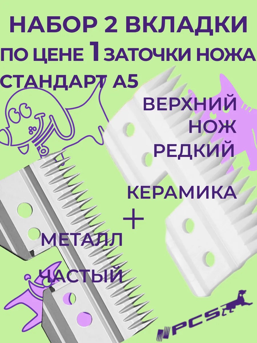 | Модель | Нож верхний в ножевой блок стандарта А5 вкладка редкая керамика 18 зубов и частая стальная 22 зуба |