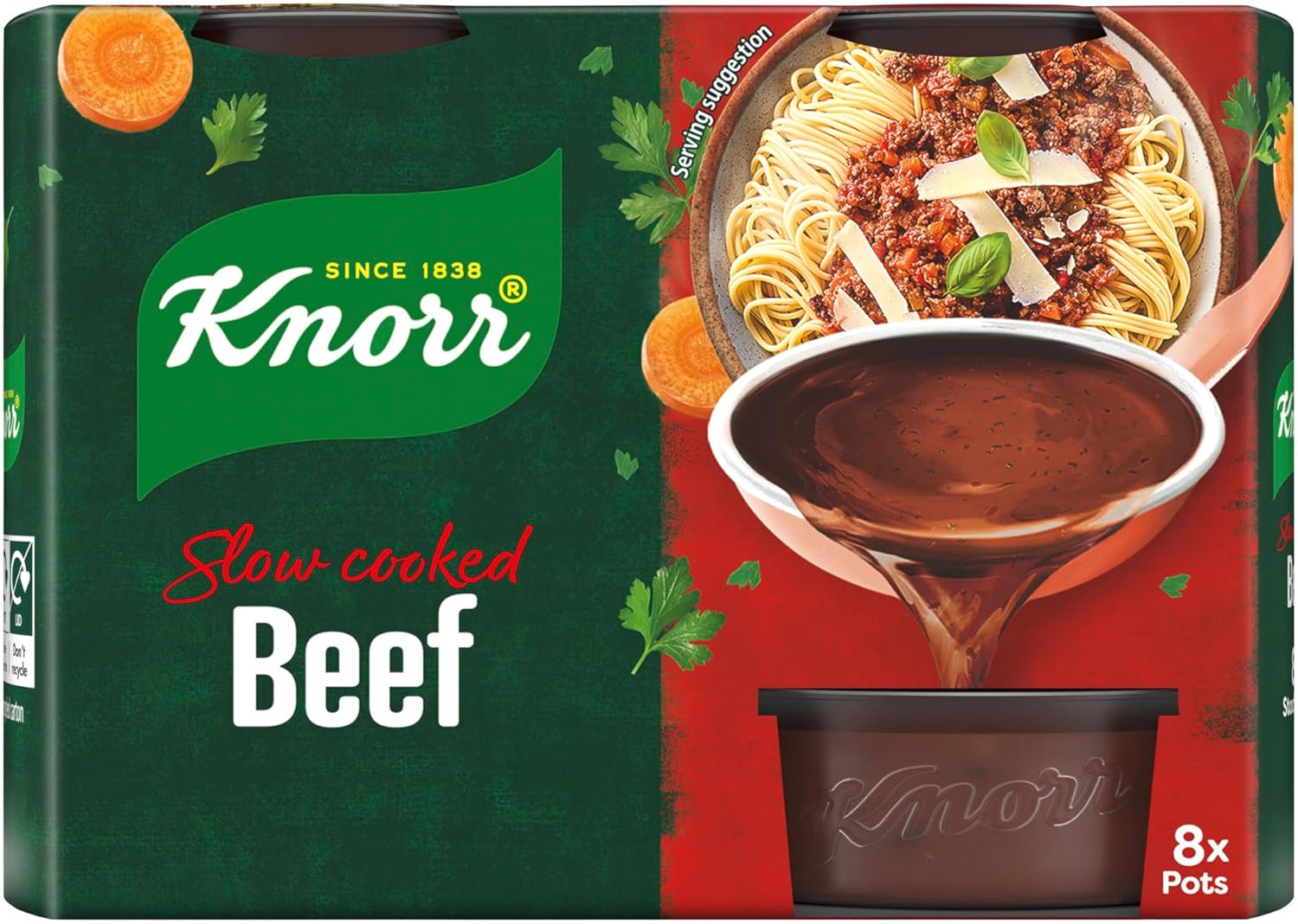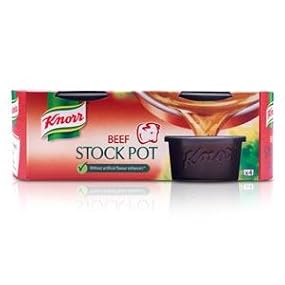 Looking for a deliciously rich stock to enhance the flavours of your beef mealsTreat your taste buds and add an extra helping of flavour to your dishes with Knorr Beef Stock Pots. Gluten free and made with sustainably grown vegetables and herbs, they are perfect for creating a variety of dishes ranging from beef pies to rustic stews, delicious sauces, tasty soups and more. On top of the mouth-watering taste, Knorr Beef Stock Pots are quick and easy to prepare. Simply add the gluten-free beef stock pot directly to your dishes, or dissolve into 500 ml of boiling water. For a lighter stock, use 750 ml of water. Why not use our stock to beef up a spaghetti bologneseFry up some minced beef with diced onions, garlic, carrots and celery, add plum tomatoes and your Knorr Beef Stock Pot before stirring in some freshly chopped basil. When fully cooked, pour it over al dente spaghetti and top with Parmesan cheese. A classic spag bol, with added richness. For more recipe inspiration, please visit our website. We've got all your meat dishes covered. You can also explore our wide range, including chicken stock pots and vegetable stock pots, or try our stock cubes – ideal for almost any dish. We use quality ingredients with no artificial colours or preservatives to create delicious and authentic flavours enjoyed by families around the world. At Knorr, we are on a mission to help the nation eat more variety. Through our products and recipes, we're inspiring others to make healthier choices while still enjoying delicious food. INGREDIENTS Water, salt, flavourings, beef fat (beef fat, antioxidant (extracts of rosemary)) (5.2 ), yeast extract, beef stock powder (2 ), potassium chloride, gelling agents (xanthan gum, locust bean gum ), caramel syrup, maltodextrin, sugar, carrots†, lovage root†, sunflower oil, beef powder (0.1 ), leek†, parsley†. †Sustainably grown DIRECTIONS Adding directly to your dish, each versatile little pot will enrich gravies, pastas or even stir fries, smoothly melting to bring a full and rich taste. Alternatively, dissolving into 500ml of boiling water will make a delicious stock for soups, risottos or casseroles. For a lighter stock, use 750ml water. Knorr Top Tip Do you know that after opening, the pot can be kept in the fridge for up to 3 daysProduct can crystallize - this is a natural process which doesn't impact on quality. SAFETY WARNING Adding directly to your dish, each versatile little pot will enrich gravies, pastas or even stir fries, smoothly melting to bring a full and rich taste. Alternatively, dissolving into 500 ml of boiling water will make a delicious stock for soups, risottos or casseroles. For a lighter stock, use 750 ml water. Knorr Top Tip Do you know that after opening, the pot can be kept in the fridge for up to 3 days. Product can crystallize - this is a natural process which doesn't impact on quality. MANUFACTURER CONTACT INFORMATION Unilever UK, Knorr, Freepost ADM3940, London, SW1A 1YR. Unilever Ireland, 20 Riverwalk, Citywest, Dublin 24. See moreThe rich and flavourful taste of a Knorr stock pot is an easy way to make a beef dish stand out. Try it in a beef stroganoff or look for recipe inspiration on the Knorr website. Enjoy without worry – our gluten-free beef stock is free from artificial colours and preservatives. Our stock is part of our mission to help the nation eat more variety, for a more sustainable future. This pack contains 4x 28 g stock pots to last you even longer. Knorr Beef Stock Pots contain quality ingredients such as sustainably grown vegetables to bring out the rich flavour of your beef dishes. Enhance the beef flavour of your dishes with the full-bodied taste of Knorr Beef Stock Pots.