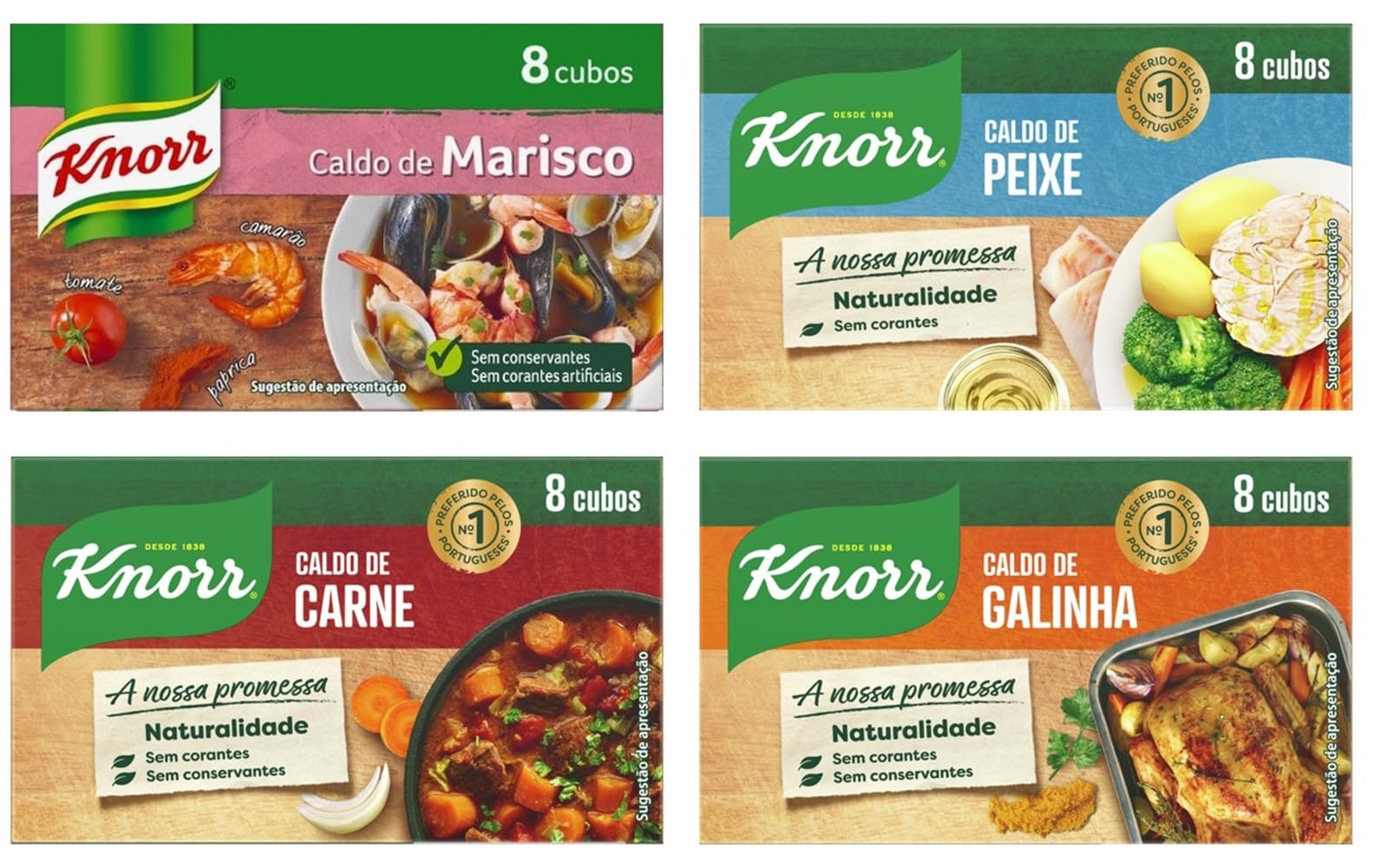 : With Knorr Stock Mix, conveniently packaged in a 4-pack, you're perfectly prepared for all your recipes! Whether you're looking for a robust meat stock, a delicate chicken stock, an aromatic fish stock, or an intense seafood flavor, this mix provides the ideal seasoning for every dish. Add variety and flavor to your meals: with Knorr Stock Mix, you'll always have the perfect base on hand! Instructions: Dissolve one cube in boiling water or add directly to dishes for instant flavor. For soups and stews, use one cube per serving. For rice, pasta, and risotto, use one cube for every 250g of the main ingredient.? Knorr quality – proven for decades. ? Perfect for creative cooking and varied meals. ? 8 cubes per variety – easy to measure and dissolves quickly. ? Ideal for soups, stews, sauces, rice and pasta dishes. ? Versatile set: 4 types of stock in one pack.Description du produit Avec le mélange pour bouillon Knorr, présenté en pack pratique de 4, vous êtes parfaitement préparé pour toutes vos recettes ! Que vous recherchiez un bouillon de viande corsé, un bouillon de poulet délicat, un bouillon de poisson aromatique ou un goût intense de fruits de mer, ce mélange offre l'assaisonnement idéal pour chaque plat. Apportez de la variété et de la saveur à vos plats : avec le mélange pour bouillon Knorr, vous aurez toujours la base idéale sous la main ! Mode d'emploi Dissoudre un cube dans de l'eau bouillante ou ajouter directement aux plats pour un goût instantané. Pour les soupes et les ragoûts, utilisez un cube par portion. Pour le riz, les pâtes et les risottos, utilisez un cube pour 250 g de l'ingrédient principal.? Qualité Knorr – éprouvée depuis des décennies. ? Parfait pour une cuisine créative et des repas variés. ? 8 cubes par variété – facile à doser et rapidement soluble. ? Idéal pour les soupes, les ragoûts, les sauces, les plats de riz et de pâtes. ? Ensemble polyvalent : 4 types de bouillon dans un seul emballage.Knorr Bouillon (4 pièces) poisson fruits de mer viande poulet paquet de 4 avec 8 cubes