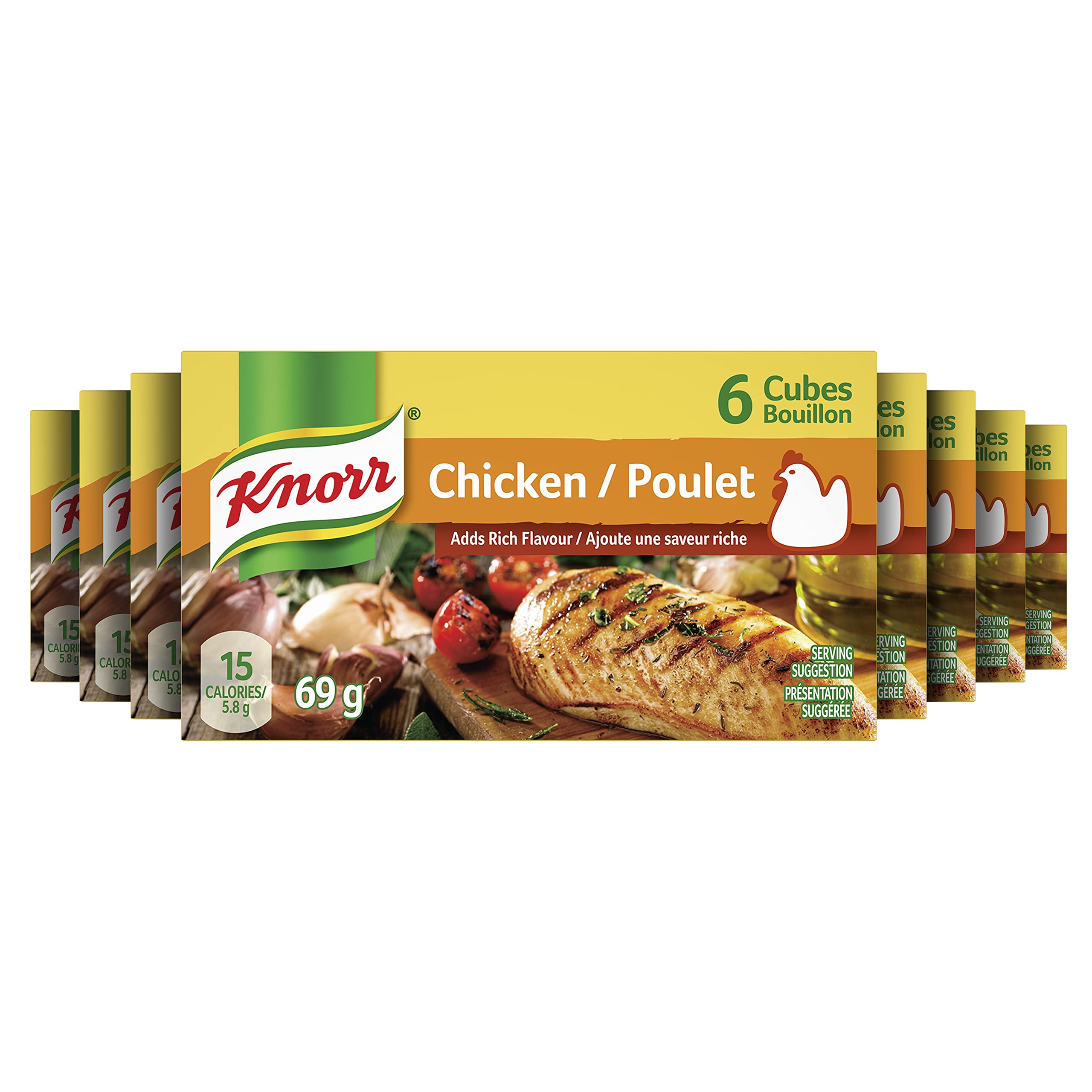 Knorr Chicken Cubes are easy to use, quick to dissolve, and add a rich deep chicken flavour to your dishes. Just dissolve one cube in 2 cups (500 mL) boiling water. Add great flavour to any meal with Knorr.