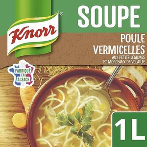 Saveurs d'Antan is a range of recipes from Knorr chefs created using all the know-how of Yesteryear. Prepared with simple and tasty ingredients, they are gently simmered to reveal all their flavor. Let yourself be tempted by the delicious taste of this chicken broth with vermicelli, decorated with pieces of poultry and small tender vegetables to warm you up. This Knorr soup is cooked with vegetables from sustainable agriculture. Quick and easy to prepare, this Knorr Saveurs d'Antan soup is perfect for enjoying a healthy and delicious meal when you're short on time. Shake, pour, reheat in a pan or microwave and enjoy its comforting softness and warmth. No need to add salt. This 1 L format allows you to make 4 generous bowls of soup. Discover the other Knorr soups (velouté, mouliné, soup and dehydrated soup), delicious recipes that bring you warmth and comfort. The best possible quality is our philosophy when it comes to food. Since Knorr was founded by Carl Heinrich Knorr in Germany in 1838, all our efforts have been aimed at creating original recipes and tasty dishes. Our story is made up of thousands of little stories of passionate farmers, purveyors and chefs trying to make the world a better, tastier place. At Knorr, we believe that responsible use of agricultural resources helps provide you with quality soups. This is why we choose vegetables from sustainable agriculture and grown in open fields to prepare our delicious soups for you. In addition, our packaging is FSC certified and 100 recyclable. This is an approach that is good for the planet and which, we are certain, influences the taste and flavors of each dish you cook. Whatever your desires, Knorr supports you every day. INGREDIENTS OUR RECIPE Ingredients: water, cooked vermicelli: 12 (durum WHEAT semolina, EGG white), chicken meat: 3 , carrot¹: 1.4 , onion¹: 1.4 , CELERY RAB¹: 1 , modified corn starch, leek¹: 0.9 , chicken fat: 0.7 , flavors, corn starch potato, salt, spices and herbs (chervil¹, parsley¹: 0.03 , pepper, turmeric¹), concentrated carrot juice: 0.02 , concentrated lemon juice. May contain: other cereals containing gluten, milk, mustard, soy. ¹Ingredients from sustainable agriculture: 4.8 . DIRECTIONS FOR USE PREPARATION TIPS: 1. SHAKE 2. POUR IN POT OR MICROWAVE: 3. REHEAT WITHOUT BOILING 4. ENJOY NO NEED TO SALT. DISCLAIMER Non-contractual photography. The above indications are given for information purposes. They are not necessarily exhaustive and cannot replace the information appearing on the product packaging which alone is authentic, and to which you are invited to refer, particularly in the event of food intolerance. Discover other Knorr soups, delicious recipes that bring you warmth and comfort. Liquid Soup Saveurs d'Antan is prepared without flavor enhancers, colorings², or preservatives, in compliance with regulations. Quick to prepare, this soup is perfect for sharing a delicious meal when you're short on time. Simply shake, pour, heat in a saucepan or microwave, and enjoy this vegetable soup! No need to add salt. The perfect soup to warm you up. Knorr chefs offer you the savory taste of chicken broth with vermicelli noodles, enhanced with pieces of poultry and tender vegetables. The perfect soup to warm you up. Saveurs d'Antan est une gamme de recettes des chefs Knorr élaborées à partir de tout le savoir-faire d'Antan. Préparées avec des ingrédients simples et savoureux, elles ont doucement mijoté afin de révéler toute leur saveur. Laissez-vous tenter par le goût savoureux de ce bouillon de poule aux vermicelles, agrémenté de morceaux de volaille et de petits légumes fondants pour vous réchauffer. Cette soupe Knorr est cuisinée avec des légumes issus de l'agriculture durable. Rapide et facile à préparer, cette soupe Knorr Saveurs d'Antan est parfaite pour profiter d'un repas sain et délicieux lorsque vous manquez de temps. Secouez, versez, réchauffez à la casserole ou au micro-ondes et profitez de sa douceur et de sa chaleur réconfortante. Inutile de saler. Ce format 1 L vous permet de réaliser 4 généreux bols de soupe. Découvrez les autres soupes Knorr (velouté, mouliné, potage et soupe déshydratée), des délicieuses recettes qui vous apportent chaleur et réconfort. La meilleure qualité possible, telle est notre philosophie en matière d'alimentation. Depuis la création de Knorr par Carl Heinrich Knorr en Allemagne en 1838, tous nos efforts visent à créer des recettes originales et des plats savoureux. Notre histoire est faite de milliers de petites anecdotes d'agriculteurs, de fournisseurs et de chefs passionnés qui tentent de rendre le monde meilleur et plus savoureux. Chez Knorr, nous sommes convaincus qu'une utilisation responsable des ressources agricoles contribue à vous offrir des soupes de qualité. C'est pourquoi, nous faisons le choix de légumes issus de l'agriculture durable et cultivés en plein champs pour vous préparer nos délicieuses soupes. De plus, nos emballages sont certifiés FSC et 100 recyclables. Il s'agit là d'une approche favorable pour la planète et qui, nous en sommes certains, influence le goût et les saveurs de chaque plat que vous mijotez. Quelles que soient vos envies, Knorr vous accompagne au quotidien. INGRÉDIENTS NOTRE RECETTE Ingrédients : eau, vermicelle cuit : 12 (semoule de BLÉ dur, blanc d'ŒUF), viande de poule : 3 , carotte¹ : 1,4 , oignon¹ : 1,4 , CÉLERI-RAVE¹ : 1 , amidon modifié de maïs, poireau¹ : 0,9 , graisse de poule : 0,7 , arômes, amidon de pomme de terre, sel, épices et aromates (cerfeuil¹, persil¹ : 0,03 , poivre, curcuma¹), jus de carotte concentré : 0,02 , jus de citron concentré. Peut contenir : autres céréales contenant du gluten, lait, moutarde, soja. ¹Ingrédients issus de l'agriculture durable : 4,8 . MODE D'EMPLOI CONSEILS DE PRÉPARATION : 1. SECOUEZ 2. VERSEZ CASSEROLE OU MICRO-ONDES : 3. RÉCHAUFFEZ SANS PORTER À ÉBULLITION 4. DÉGUSTEZ INUTILE DE SALER. CLAUSE D