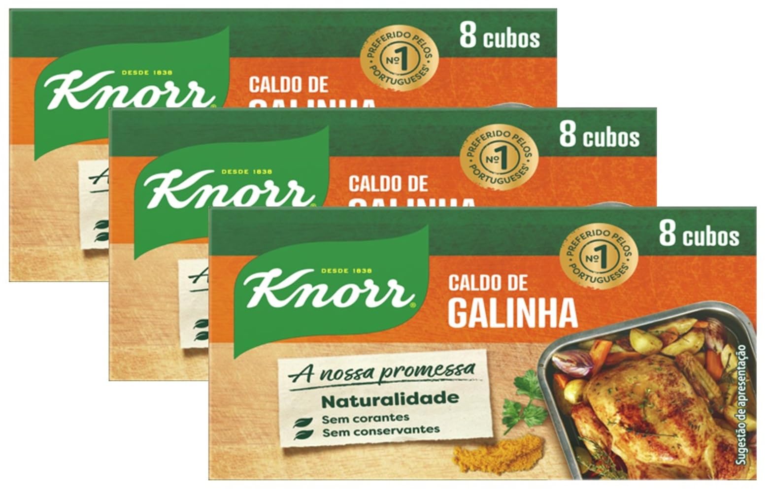Add a flavorful and robust touch to your dishes with Knorr Chicken Stock, available in a convenient 3-pack. Each pack contains 8 cubes with an intense chicken flavor, ideal for soups, stews, sauces, and for seasoning rice and vegetable dishes. With Knorr Chicken Stock, create delicious homemade meals in no time, full of flavor and effortlessly!? Knorr quality proven for decades. ? Pack of 3 – ideal for everyday use. ? Perfect for soups, stews, sauces, and more. ? Quick and easy to dissolve. ? Strong chicken flavor for a variety of dishes.Ajoutez une touche savoureuse et corsée à vos plats avec le bouillon de poulet Knorr, proposé en lot pratique de 3. Chaque paquet contient 8 cubes au goût intense de poulet, idéal pour les soupes, les ragoûts, les sauces et pour assaisonner les plats de riz et de légumes. Avec le bouillon de poulet Knorr, concoctez de délicieux plats maison en un rien de temps, pleins de saveurs et sans effort !? Qualité Knorr éprouvée depuis des décennies. ? Pack de 3 – idéal pour un usage quotidien. ? Parfait pour les soupes, les ragoûts, les sauces et plus encore. ? Rapide et facile à dissoudre. ? Forte saveur de poulet pour une variété de plats.Knorr lot de 3 bouillons de poulet 8 cubes
