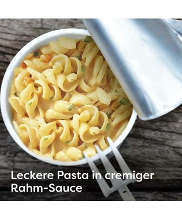 The Knorr Pasta Snack Rahm herbs is noodles in cream sauce with natural ingredients.The fast little meal is a hearty snack for the office or when there is no time to cook at home.The cup is poured in with hot water and the Knorr is prepared within just 5 minutes.Preparation: Open the lid and pour boiling water until marking.Stir thoroughly and close the lid again.Let the snack pot steep for 5 minutes.Stir again well and a delicious pasta dish is ready in 5 minutes.In our diverse range we have creamy pasta snacks and hearty potato snacks.In addition to the Rahm Kraubter noodle dish, variety also offers a range of authentic Asian instant pasta.Just take a break with the delicious snack cups from Knorr.Are Knorr's many other products already knownThanks to the fixed products, sauces, ready meals, soups, salad dressings, potato puree, brewing and bouillons, every dish is guaranteed to succeed in just a few simple steps.Authentic meals quickly and easily get their typical taste - regardless of whether varied vegetarian or vegan cuisine, hearty meat dishes or delicious vegetable variations.It is the composition of selected high -quality ingredients that makes every Knorr product special.Knorr processes carefully dried ingredients, because drying is one of the oldest methods to naturally durable.Since the taste and the main nutrients of the fresh ingredients are largely preserved, food from dried ingredients fit perfectly into our stressful everyday life.Eating with Knorr is uncomplicated and also ensures a good feeling: 95 percent of our vegetables and herbs come from sustainable cultivation today.Because at Knorr, we believe that the use of sustainably grown and procured ingredients makes a big difference for the taste of our products, the well -being of farmers and the future of the planet.Knorr.Good, simply delicious! Ingredients ingredients Ingredients: 58 noodles¹ (durum wheat, wheat flour), 12 cream powder¹, starch¹, flavors (with wheat), sunflower oil, tomato powder¹², glucose syrup¹, citrus fiber, milk sugar, 1 carrot ph), Potassium chloride³, onions¹, milk protein, iodized dining salt, onion juice concentrate², dining salt, yeast extract.Can contain egg, celery, mustard, soy, other gluten -containing grain.¹ Natural ingredients are marked with an asterisk.² from sustainable cultivation.³ Salica replacement, obtained from natural potassium minerals. Instructions Snack me!1) Open the lid.Pour up with boiling water until marking.2) Thoroughly stir and close the lid again.3) Let everything go for 5 minutes.Team again well. Warnings no Address manufacturer importer Postfach 570 550, 22774 Hamburg MoreThe Knorr Snack cups are available in many variants.Delicious instant pasta finished in just 5 minutes.Knorr pasta snack - with natural ingredients.Creamy pasta snack with cream sauce - a hearty snack when there is no time to cook at home.The instant noodles can only be prepared with hot water.Knorr pasta snack cream herbs - the fast little meal for the office or for at home.Der Knorr Pasta Snack Rahm Kräuter ist Nudeln in Rahmsauce mit natürlichen Zutaten. Die schnelle kleine Mahlzeit ist ein herzhafter Snack für das Büro oder wenn zu Hause mal keine Zeit zum Kochen ist. Dabei wird der Becher mit heißem Wasser aufgegossen und innerhalb von nur 5 Minuten ist das Knorr Fertiggericht zubereitet. Zubereitung: Deckel öffnen und mit kochendem Wasser bis zur Markierung aufgießen. Gründlich umrühren und Deckel wieder schließen. Den Snack Pot 5 Minuten ziehen lassen. Nochmals gut umrühren und in 5 Minuten ist ein leckeres Pasta Gericht fertig. In unserem vielfältigen Sortiment haben wir cremige Pasta Snacks und herzhafte Kartoffel-Snacks. Abwechslung bietet neben dem Nudelgericht Rahm Kräuter auch ein Sortiment von authentisch asiatischen Instant Nudeln. Einfach mal eine Auszeit mit den leckeren Snackbechern von Knorr nehmen. Sind schon die vielen weiteren Produkte von Knorr bekanntDank der Fix-Produkten, Soßen, Fertiggerichten, Suppen, Salatdressings, Kartoffel Püree, Brühen und Bouillons gelingt jedes Gericht garantiert mit wenigen Handgriffen. Schnell und einfach erhalten so authentische Mahlzeiten ihren typischen Geschmack – egal, ob abwechslungsreiche vegetarische oder vegane Küche, herzhafte Fleischgerichte oder leckere Gemüsevariationen. Dabei ist es die Komposition ausgewählter hochwertiger Zutaten, die jedes Knorr Produkt besonders macht. Knorr verarbeitet nur sorgfältig schonend getrocknete Zutaten, denn das Trocknen ist eine der ältesten Methoden, um Lebensmittel natürlich haltbar zu machen. Da der Geschmack und die Hauptnährstoffe der frischen Zutaten weitgehend erhalten bleiben, passen Lebensmittel aus getrockneten Zutaten perfekt in unseren stressigen Alltag. Essen mit Knorr ist unkompliziert und sorgt darüber hinaus für ein gutes Gefühl: 95 Prozent unserer Gemüse und Kräuter stammen heute schon aus nachhaltigem Anbau. Denn wir bei Knorr glauben, dass die Verwendung nachhaltig angebauter und beschaffter Zutaten einen großen Unterschied für den Geschmack unserer Produkte, das Wohlbefinden der Landwirte und die Zukunft des Planeten macht. Knorr. Gutes, einfach lecker! INHALTSSTOFFE ZUTATEN Zutaten: 58 Nudeln¹ (HARTWEIZENGRIESS, WEIZENMEHL), 12 SAHNEPULVER¹, Stärke¹, Aromen (mit WEIZEN), Sonnenblumenöl, Tomatenpulver¹², Glukosesirup¹, Zitrusfaser, MILCHZUCKER, 1 Karotten¹, Knoblauchpulver¹, Kurkuma¹, 0,5 Kräuter¹ (Schnittlauch, Petersilie), Kaliumchlorid³, Zwiebeln¹, MILCHEIWEISS, jodiertes Speisesalz, Zwiebelsaftkonzentrat², Speisesalz, Hefeextrakt. Kann Ei, Sellerie, Senf, Soja, andere glutenhaltige Getreide enthalten. ¹ Natürliche Zutaten sind mit einem Sternchen gekennzeichnet. ² Aus nachhaltigem Anbau. ³ Kochsalzersatz, gewonnen aus natürlichen Kaliummineralien. GEBRAUCHSANWEISUNG SNACK MICH! 1) Öffne den Deckel. Gieße mit kochendem Wasser bis zur Markierung auf. 2) Rühre gründlich um und schließe den Deckel wieder. 