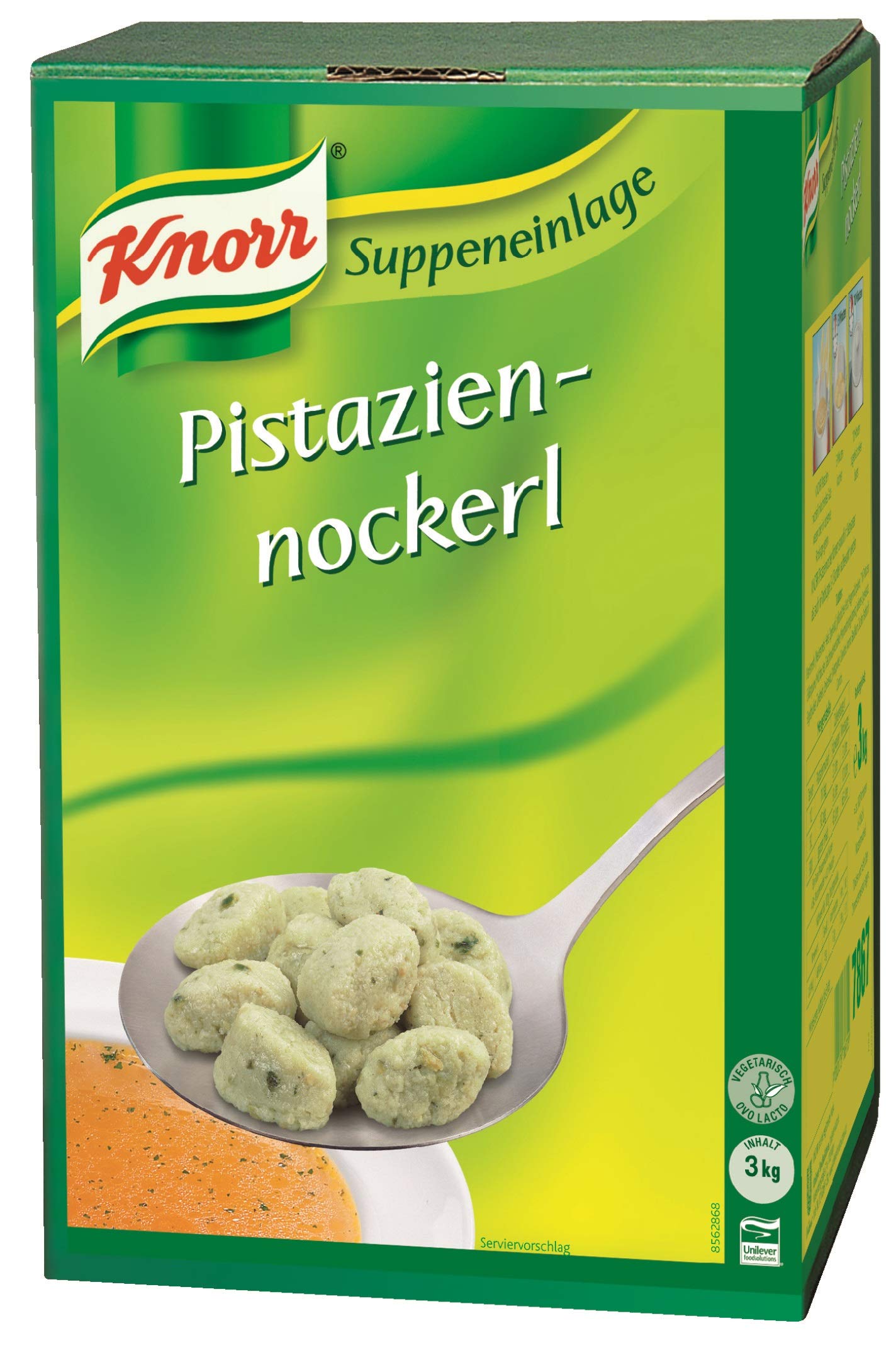 Knorr Pistachiennockerl bring variety to her soup offer.The loose-fluffy dumplings with a fine pistachio taste have an ideal consistency and contain small pistachi pieces.The exquisite soup insert has an attractive look - as homemade.The pre -damped loose Knorr Pistachien Nockerl have a particularly fluffy, airy texture. The preparation of the pistachiennockerl is simple and successful.This saves you saving valuable time and the elaborate self -production of the soup insert. 1kg pistachien nockerl are sufficient for 100 portions of soup. Preparation: Put Knorr Pistachiennockerl in boiling, slightly salted water or beef soup and let it boil for 3 minutes.Lay for 10 minutes.The soup insert can be kept in both water and beef soup for 2-3 hours. Special marking and food forms: Vegetarian, without preservatives, alcohol -free Ingredients / ingredients Bread flour (wheat flour, yeast, dining salt), palm oil, lean milk powder, egg clares, 5.9% pistachi, milk sugar, flavor enhancer (mononatrium glutamate, dinatrium guanylate), yodeled dining salt, egg yellowish powder, garlic, pepper), Ilikum, Sugar, chicken, dining salt, dye (carotene).you save yourself the elaborate self -production of the pistachio nock.Simple and successful preparation - ready for serving in 13 minutes.The Pistachien Nockerl have an attractive look and contain small pistachi pieces.Pre -shaped and pre -steamed soup insert with a fine pistachio taste.Loose, fluffy texture and balanced taste.Products for professional cuisine, large consumers and emergency supply food. Knorr Pistaziennockerl bringen Abwechslung in Ihr Suppenangebot. Die locker-flaumigen Nockerl mit feinem Pistaziengeschmack haben eine ideale Konsistenz und beinhalten kleine Pistazien Stücke. Die exquisite Suppeneinlage hat eine attraktive Optik - wie hausgemacht. Die vorgedämpften lockeren Knorr Pistazien Nockerl haben eine besonders flaumig, luftige Textur. Die Zubereitung der Pistaziennockerl ist einfach und gelingsicher . Somit sparen Sie sich wertvolle Zeit und die aufwändige Selbstherstellung der Suppeneinlage entfällt. 1kg Pistazien Nockerl genügen für 100 Portionen Suppe. Zubereitung: Knorr Pistaziennockerl in kochendes, leicht gesalzenes Wasser oder Rindsuppe geben und 3 Minuten kochen lassen. 10 Minuten zugedeckt ziehen lassen. Die Suppeneinlage kann sowohl in Wasser als auch in Rindsuppe 2-3 Stunden aufbewahrt werden. BESONDERE KENNZEICHNUNGS- UND KOSTFORMEN: Vegetarisch, ohne Konservierungsstoffe, alkoholfrei INHALTSSTOFFE / ZUTATEN Paniermehl (WEIZENMEHL, Hefe, Speisesalz), Palmöl, MAGERMILCHPULVER, EIKLARPULVER, 5,9% PISTAZIEN, MILCHZUCKER, Geschmacksverstärker (Mononatriumglutamat, Dinatriumguanylat), jodiertes Speisesalz, EIGELBPULVER, Zwiebeln, Spinatpulver, Knoblauch, Pfeffer, Aromen (mit MILCH), Basilikum, Zucker, Huhn, Speisesalz, Farbstoff (Carotin).Sparen Sie sich die aufwändige Selbstherstellung der Pistaziennockerl. Einfache und gelingsichere Zubereitung - in 13 Minuten servierfertig. Die Pistazien Nockerl haben eine attraktive Optik und beinhalten kleine Pistazien Stücke. Vorgeformte und vorgedämpfte Suppeneinlage mit feinem Pistaziengeschmack. Locker, flaumige Textur und ausgewogener Geschmack. Produkte für die professionelle Küche, Großverbraucher und Notvorrat Lebensmittel.Knorr Pistaziennockerl (vorgeformte Nockerl mit feinnem Pistaziengeschmack) 1er Pack (1 x 3 kg)