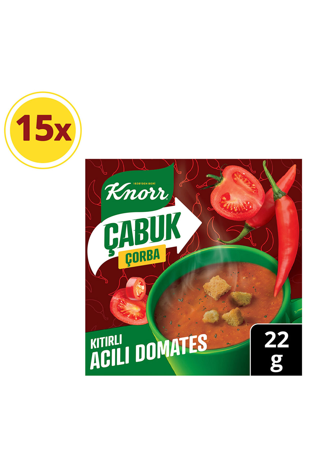 : For those moments when you're saying, "I'm so hungry," how about taking a warm break from life with Knorr Quick Soup? You might want to take a short break and grab a delicious snack while chatting with friends, studying, watching a movie, or playing a game. Whenever and wherever you want a warm break, Knorr Quick Soup is the perfect choice for you. With Knorr Quick Soup, you can prepare Knorr Quick Spicy Tomato Soup, one of the warming flavors of our regional cuisine, in just one minute and take a warm break from life. All you need for a warm break with the unique flavor of Knorr Quick Spicy Tomato is some hot water and one minute. The rest is easy! To prepare this delicious and easy Knorr Quick Spicy Tomato recipe, just follow these three simple steps: 1. Pour the contents of the packet into your favorite medium-sized mug. 2. Add ¾ cup (170 ml) of boiling water and stir well. 3. Your soup will be ready to enjoy in just 1 minute! Whenever you need a warm break from the busy day, Knorr Instant Soup is ready to serve you a delicious and practical alternative in just 1 minute. Wherever and whenever you're hungry, Knorr Instant Hot Tomato is by your side! Be quick with Knorr Instant Soup and seize the moment! Come on, try Knorr Instant Hot Tomato. Product Ingredients: Dried ground tomatoes ( .6 ), starch, crispbread (.6 ) (wheat flour (gluten), yeast, salt), maltodextrin, whey powder (dairy product), fat powder (6.8 ) ((whey powder (dairy product), milk sugar, vegetable oil (palm)), sugar, iodized salt, flavorings, hot red pepper (2.3 ), red pepper flakes, yeast extract, vegetable oil (palm), basil, dried ground garlic, vinegar powder. May contain traces of egg, celery, mustard, soy, hazelnuts, pistachios, almonds, and sesame seeds.