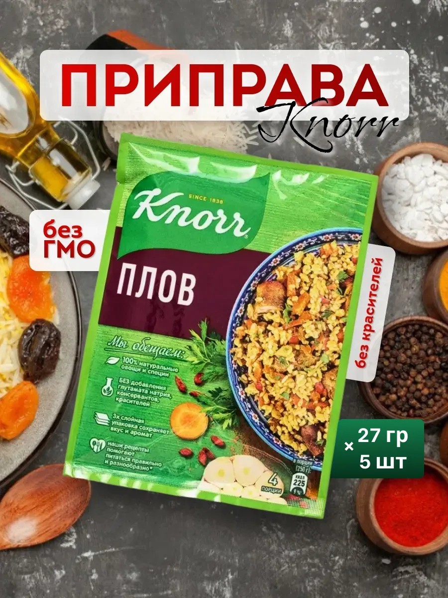 Специи для плова от Knorr представляют собой набор из 5 пакетиков по 27 грамм каждый, идеально подходящий для приготовления традиционного плова и других вторых блюд. Эта универсальная приправа содержит только натуральные ингредиенты, такие как морковь, репчатый лук, кориандр, паприка красная, тмин, барбарис, черный перец, базилик, куркума, тимьян, кумин, перец чили, соль, сахар и подсолнечное масло, что делает её идеальным выбором для тех, кто следит за своим здоровьем.