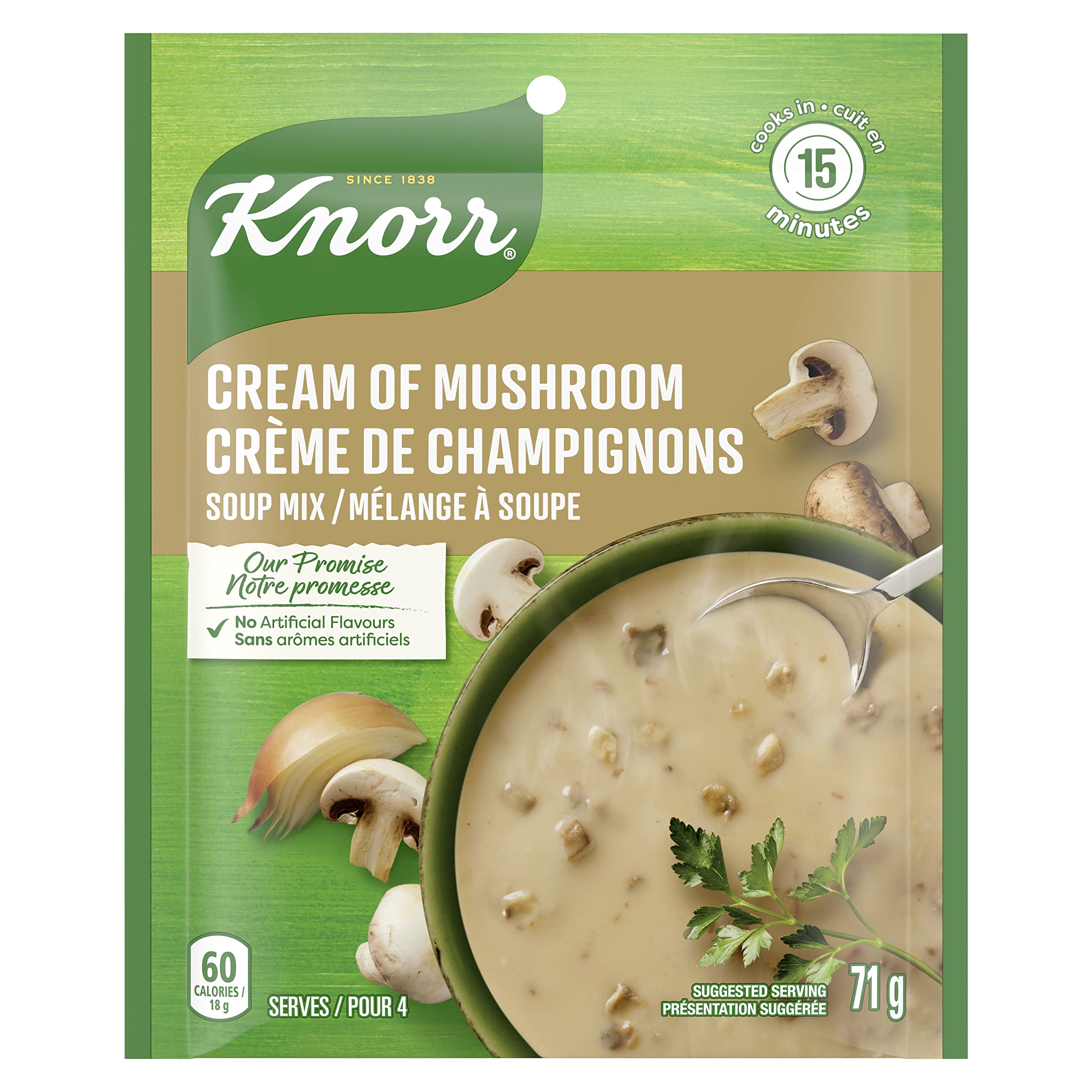 Treat your taste buds to Knorr Cream of Mushroom Soup Mix. Knorr Cream of Mushroom Dry Soup Mix is delicious whether served as a soup or when added to your favourite recipes for extra flavour. Each packet of dry soup mix contains enough to make 4 servings of a delicious cream of mushroom soup, ready in just 15 minutes. Now it's delicious. Dig in. Even better, as part of our promise, we support sustainably grown mushrooms and don't use artificial flavours in our low fat, trans fat-free soup mix. We love food the way you love food. To make great tasting meals, you really have to love everything about food. We know how you value good, nutritious, flavourful food, and authentic home cooking. To help you deliver mouth-watering meals, we go to extraordinary lengths in pursuit of great flavour. This means we always go the extra mile, not accepting mediocrity, never giving up. We bring flavours from around the world to our kitchens, and our chefs skillfully develop exciting recipes that you can recreate in the comfort of your own kitchen. Knorr believes that good food matters, and everyday meals can be just as magical as special occasions. We source high-quality ingredients to create delicious side dishes, bouillons, sauces, gravies, soups and seasonings enjoyed by families everywhere.Knorr sources high-quality ingredients to create delicious soups, including the onion soup mix, as well as side dishes, bouillons, sauces, gravies, soups seasonings enjoyed by families everywhere. Just add 3 cups of water and a cup of milk, bring to a boil and simmer gently for five minutes to make four servings of soup in 15 minutes. As part of Knorr's promise, this soup mix uses sustainably grown mushrooms, has no artificial flavours and is low-fat and trans fat free. Each packet of dry soup mix contains enough to make 4 servings of a delicious cream of mushroom soup. Knorr Soup Mixes are perfect for a delicious snack or a heartwarming meal. Knorr Cream of Mushroom Soup Mix is perfect served as a delicious soup or as an addition to your favourite recipe for an extra boost of flavour.