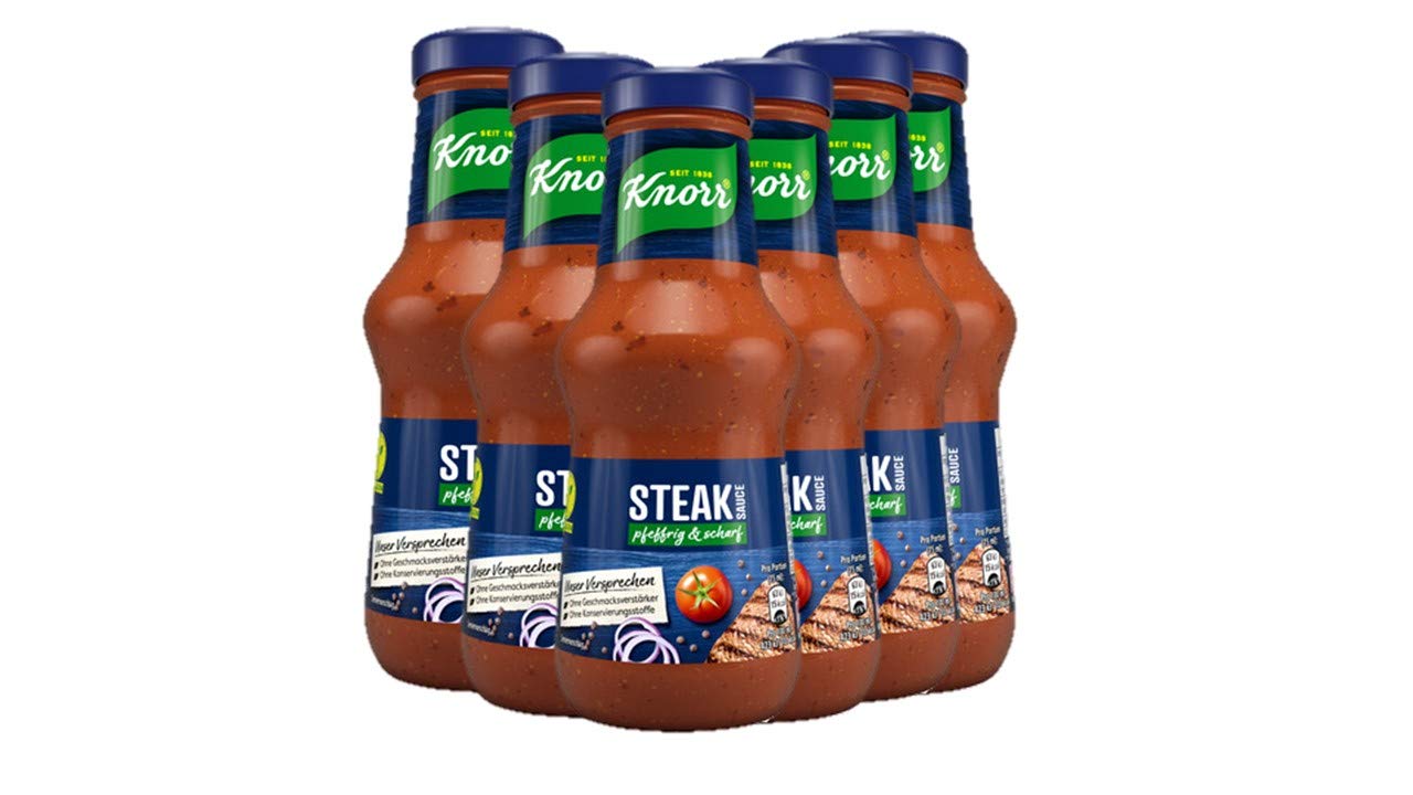 The spicy Knorr steak sauce with a spicy taste tastes excellent with meat steaks, poultry and meatballs.A mild-spicy tomato sauce, rounded with onions and black pepper.The grill party can begin with this delicious spice sauce.This Knorr grill saucen classic in the glass bottle is an indispensable companion in the barbecue season.Knorr sauces inspire both culinary artists and everyone who likes to discover new things and want to dive into the world of exotic delights.The range of Knorr Grillsaucen offers something for every taste and opportunity.For example, a barbecue party with family and friends - not a real grill party without grill sauces.The Knorr sauces are ideal for fried or grilled meat, different fish or seafood.The motto is: try it yourself and turn each dish into a culinary festival with a good mood.Millions of satisfied consumers already trust Knorr and grab the product more and more.The handy bottle of the grill sauce is easy to dose and therefore perfect for on the go.Thanks to healthy ingredients and high quality, Knorr sauces are incregly recommended for varied vegetarian and vegan cuisine.Storage and usage information: shake before use.Store in the fridge after opening.Are Knorr's many other products already knownThanks to the fixed products, sauces, ready meals, soups, salad dressings, brewing and bouillons, every dish is guaranteed to succeed in just a few simple steps.Authentic meals quickly and easily get their typical taste - regardless of whether varied vegetarian or vegan cuisine, hearty meat dishes or delicious vegetable variations.It is the composition of selected high -quality ingredients that makes every Knorr product special.Knorr processes carefully dried ingredients, because drying is one of the oldest methods to naturally durable.Since the taste and the main nutrients of the fresh ingredients are largely preserved, food from dried ingredients fit perfectly into our stressful everyday life.Eating with Knorr is uncomplicated and also ensures a good feeling: 95 percent of our vegetables and herbs come from sustainable cultivation today.Because at Knorr, we believe that the use of sustainably grown and procured ingredients makes a big difference for the taste of our products, the well -being of farmers and the future of the planet.Knorr.Good, of course delicious! Ingredients ingredients Ingredients: 68 tomato paste, sugar, 6 onions, brandy vinegar, modified starch, dining salt, black pepper, spices, aroma. Instructions Shake before use. Address manufacturer importer Postfach 570 550, 22774 Hamburg MoreKnorr offers grill saucen with the best ingredients of the highest quality.Grill sauce in a handy glass bottle and for the child's light, refine dishes.The spicy sauce to grill meat - perfect for a grill party for real meat tigers and for many other occasions.The grill sauce ideally fits chopping steaks, poultry and meatballs.A mild-spicy tomato sauce, rounded with onions and black pepper, without flavor enhancers and without dyes.Knorr steak sauce - the grill party can begin with this delicious spice sauce.Die pikante Knorr Steak Sauce mit würzigem Geschmack schmeckt ausgezeichnet zu Hacksteaks, Geflügel und Frikadellen. Eine mild-würzige Tomatensauce, abgerundet mit Zwiebeln und schwarzem Pfeffer. Mit dieser leckeren Würzsauce kann die Grillparty beginnen. Dieser Knorr Grillsaucen-Klassiker in der Glasflasche ist ein unverzichtbarer Begleiter in der Grillsaison. Knorr Saucen inspirieren sowohl Kochkünstler als auch alle, die gerne Neues entdecken und in die Welt der exotischen Genüsse eintauchen möchten. Das Sortiment an Knorr Grillsaucen bietet etwas für jeden Geschmack und jede Gelegenheit. Etwa eine Grillparty mit Familie und Freunden – ohne Grillsaucen keine richtige Grillparty. Die Knorr Saucen sind ideal für gebratenes oder gegrilltes Fleisch, verschiedene Fische oder Meeresfrüchte. Die Devise lautet: selbst ausprobieren und jedes Gericht zu einem kulinarischen Fest mit guter Stimmung verwandeln. Millionen zufriedener Verbraucher vertrauen bereits auf Knorr und greifen immer öfter nach dem Produkt. Die handliche Flasche der Grillsauce ist leicht dosierbar und daher perfekt für unterwegs. Dank gesunder Zutaten und einer hohen Qualität werden Knorr Saucen zunehmend auch für die abwechslungsreiche vegetarische und vegane Küche empfohlen. Aufbewahrungs- und Verwendungshinweise: Vor Gebrauch schütteln. Nach dem Öffnen im Kühlschrank aufbewahren. Sind schon die vielen weiteren Produkte von Knorr bekanntDank der Fix-Produkte, Soßen, Fertiggerichte, Suppen, Salatdressings, Brühen und Bouillons gelingt jedes Gericht garantiert mit wenigen Handgriffen. Schnell und einfach erhalten authentische Mahlzeiten so ihren typischen Geschmack – egal, ob abwechslungsreiche vegetarische oder vegane Küche, herzhafte Fleischgerichte oder leckere Gemüsevariationen. Dabei ist es die Komposition ausgewählter hochwertiger Zutaten, die jedes Knorr Produkt besonders macht. Knorr verarbeitet nur sorgfältig schonend getrocknete Zutaten, denn das Trocknen ist eine der ältesten Methoden, um Lebensmittel natürlich haltbar zu machen. Da der Geschmack und die Hauptnährstoffe der frischen Zutaten weitgehend erhalten bleiben, passen Lebensmittel aus getrockneten Zutaten perfekt in unseren stressigen Alltag. Essen mit Knorr ist unkompliziert und sorgt darüber hinaus für ein gutes Gefühl: 95 Prozent unserer Gemüse und Kräuter stammen heute schon aus nachhaltigem Anbau. Denn wir bei Knorr glauben, dass die Verwendung nachhaltig angebauter und beschaffter Zutaten einen großen Unterschied für den Geschmack unserer Produkte, das Wohlbefinden der Landwirte und die Zukunft des Planeten macht. Knorr. Gutes, natürlich lecker! INHALTSSTOFFE ZUTATEN Zutaten: 68 Tomatenmark, Zucker, 6 Zwiebeln, Branntweinessig, modifizierte Stärke, Speisesalz, schwarzer Pfeffer, Gewürze, Aroma. GEBRAUCHSANWEISUNG Vor Gebrauch schütteln. ANSCHRIFT HERSTELLER IMPORTEUR Postfach 570 5