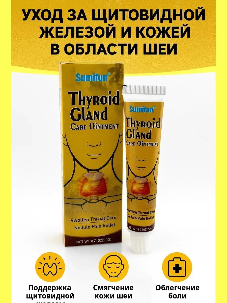 Sumifun Thyroid Gland Care Ointment is a modern product for comprehensive care of the thyroid gland and skin in the neck area, designed to relieve discomfort associated with swelling, inflammation, and the appearance of nodules. The ointment's formula is based on active plant components and carefully selected extracts that improve local circulation, provide a gentle warming effect, and provide deep tissue support in the neck area.