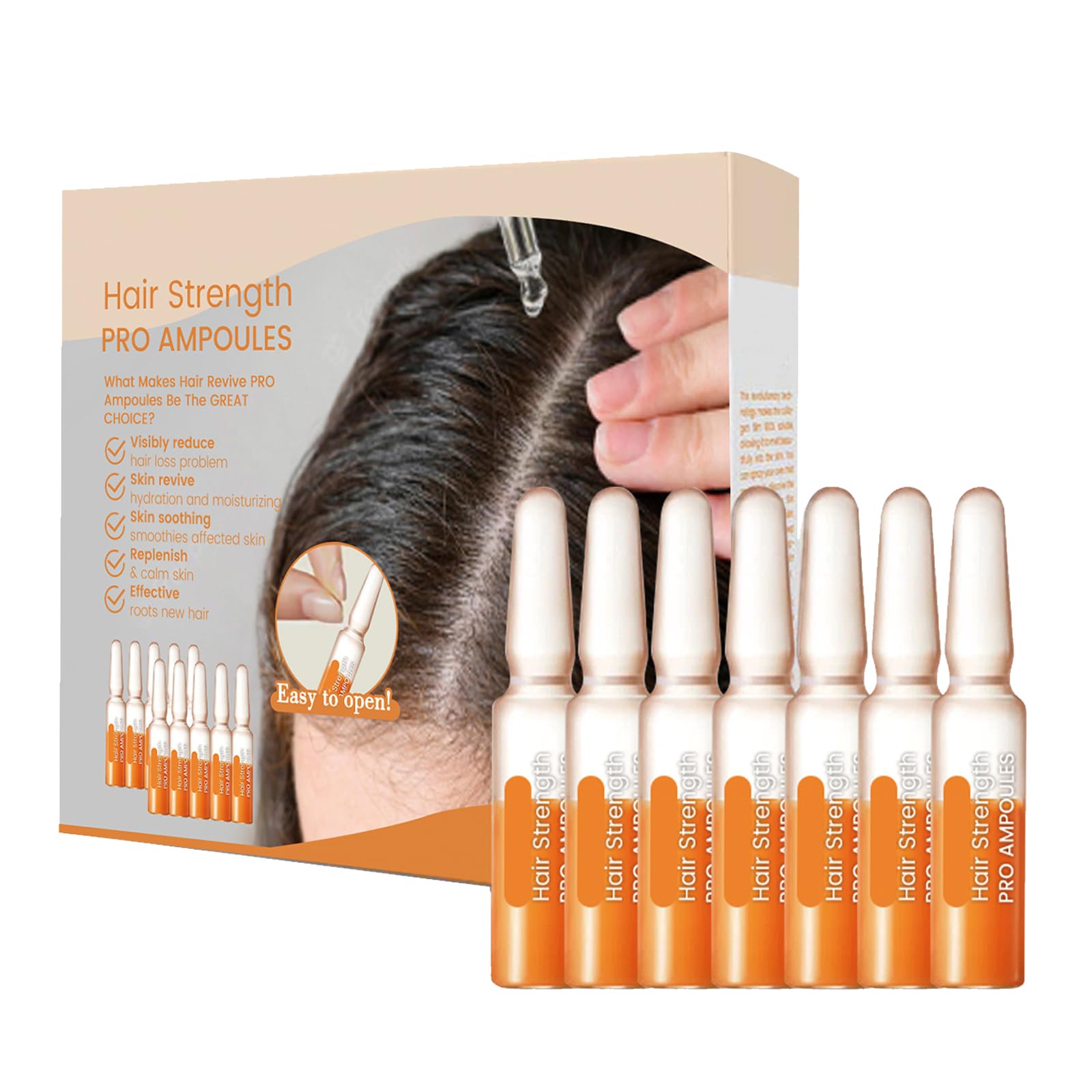 Scalp massage experience: The texture of the product is suitable for a scalp massage lotion. The texture is light and can be easily distributed over the scalp without leaving a greasy film. Improves the resistance of the hair: it can form a protective layer on the hair surface that protects against external damage and fills the damaged structures in the hair, making it smooth, strong and hardly brittle. Scalp Repair: It can relieve scalp inflammation and repair damaged scalp tissue, reduce scalp discomfort and create a healthy environment for hair growth. Promotes Thick Hair: The unique formula stimulates hair follicle activity, nourishes hair follicles and improves the growth environment of hair follicles, helping to thicken hair and improve thinning hair. Strengthen hair roots and fix hair: this hair ampoule product is specially designed to solve the problem of brittle hair roots.Tegen haaruitval voor vrouwen en mannen, haargroeiserum, 2 ml x 7 stuks, haarvoedingsstoffen, vochtverzorging, hoofdhuid, massagevloeistofHoofdhuidmassage-ervaring: de textuur van het product is geschikt voor een hoofdhuidmassage lotion. De textuur is licht en kan gemakkelijk over de hoofdhuid worden verdeeld zonder een vettige laag achter te laten. Verbetert de weerstand van het haar: het kan een beschermende laag op het haaroppervlak vormen die beschermt tegen externe schade en de beschadigde structuren in het haar vult, waardoor het glad, sterk en nauwelijks breekbaar wordt. Hoofdhuidreparatie: het kan ontstekingen van de hoofdhuid verlichten en beschadigd hoofdhuidweefsel repareren, ongemak op de hoofdhuid verminderen en een gezonde omgeving creëren voor haargroei. Bevordert dik haar: de unieke formule stimuleert de activiteit van de haarzakjes, voedt de haarzakjes en verbetert de groeiomgeving van de haarzakjes, waardoor het haar dikker wordt en dunner wordend haar wordt verbeterd. Haarwortels versterken en haar fixeren: dit haarampulproduct is speciaal ontworpen om het probleem van broze haarwortels op te lossen.