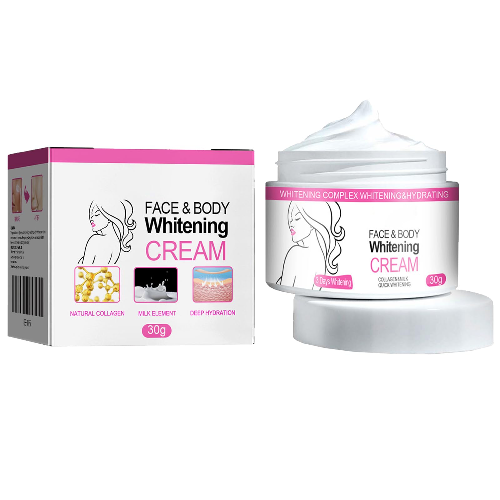 Application: After cleansing the skin, take the appropriate amount of product. Apply evenly to the skin and massage gently until fully absorbed. Widely used: This whitening cream is suitable for all parts of the body, including underarms, back, legs, knees, and the intimate area. Safe for the skin: The cream contains a variety of extracted essences that are safe, gentle, natural, skin-friendly, non-toxic, and harmless to the skin. Function: Moisturizes, brightens, firms, and softens the skin. Promotes cell metabolism, restores skin elasticity, and increases the skin's pH for a softer complexion. Helps repair enlarged pores, dilute melanin, and eliminate unwanted odors. Skin lightening and brightening cream: dull, dark line and helps discharge excess melanin on the skin's surface which contains the skin and eliminates dirt inside, convergence, a variety of extracts, effectively tightens pores to help soften the skin and prevent it from becoming dull.KOAHDE Crème blanchissante pour éclaircir les taches corporelles, éclaircissant la peau, blanchissant les aisselles, crème blanchissante pour la , 30 g, 1 pièceApplication : après avoir nettoyé la peau, prendre la bonne quantité de produit. Appliquer uniformément sur la peau et masser doucement jusqu'à absorption complète. Largement utilisé : cette crème blanchissante convient à toutes les parties du corps, aux aisselles, au dos, aux jambes et aux genoux, ainsi qu'à votre zone privée. Sans danger pour la peau : la crème contient une variété d'essences d'extraction qui sont sûres, douces, naturelles, agréables pour la peau, non toxiques et sans danger pour la peau. Fonction : hydrate, éclaircit, raffermit et adoucit la peau et favorise le métabolisme cellulaire, restaure l'élasticité de la peau, augmente le pH de la peau pour rendre la peau douce. Aide à réparer les pores grossiers, à diluer la mélanine et à éliminer les odeurs étrangères. Crème éclaircissante et éclaircissante pour la peau : ligne trouble, sombre et aide à décharger l'excès de mélanine sur la surface de la peau qui contient la peau et élimine la saleté à l'intérieur, la convergence, une variété d'extraits, retient efficacement les pores pour aider à adoucir la peau et l'empêcher de devenir terne générée.