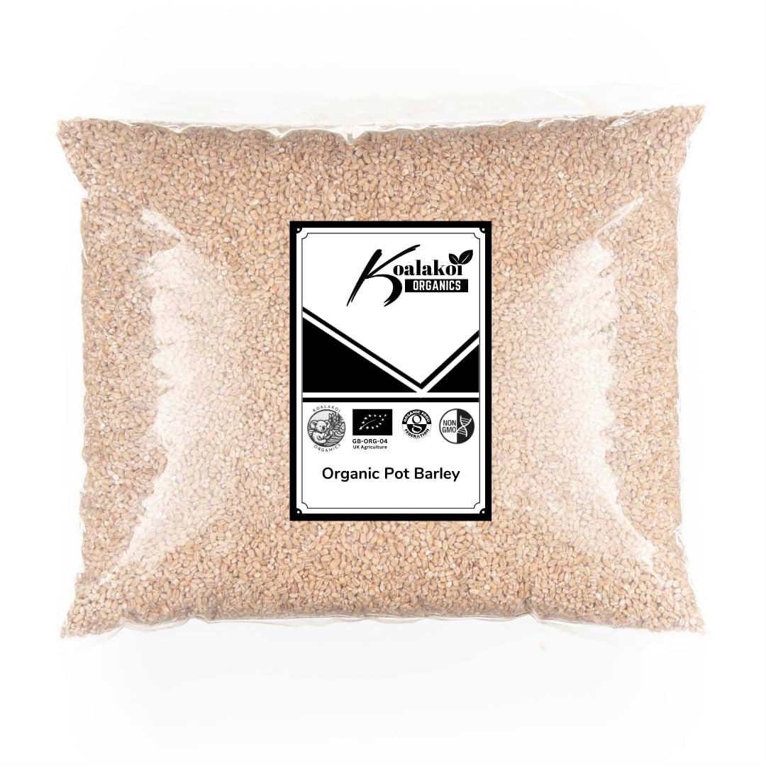 Koalakoi Organic Pot Barley offers a range of health benefits thanks to its unique nutritional profile and organic cultivation methods. Here are some of the key health benefits: High Fibre Content: Organic Pot Barley is rich in dietary fiber, which aids in digestion, promotes gut health, and helps prevent constipation. The fiber content also supports weight management by promoting feelings of fullness and reducing overeating. Nutrient-Rich: This barley variety is packed with essential nutrients such as vitamins, minerals, and antioxidants. It contains notable amounts of B vitamins, including niacin, thiamine, and vitamin B6, which play crucial roles in energy metabolism and nerve function. Heart Health: The soluble fiber found in Pot Barley can help lower cholesterol levels, thus reducing the risk of heart disease. Additionally, its potassium content helps regulate blood pressure, supporting overall cardiovascular health. Blood Sugar Regulation: Pot Barley has a low glycemic index, meaning it does not cause rapid spikes in blood sugar levels. Consuming foods with a lower glycemic index can help manage blood sugar levels and reduce the risk of type 2 diabetes. Weight Management: As a whole grain, Pot Barley is a nutrient-dense food that can be beneficial for weight management. Its fiber content promotes satiety and helps control appetite, making it easier to maintain a healthy weight. Improved Digestive Health: The fiber in Pot Barley supports a healthy digestive system by promoting regular bowel movements and feeding beneficial gut bacteria. This can help prevent digestive issues such as constipation, bloating, and irritable bowel syndrome (IBS). Antioxidant Properties: Barley contains various antioxidants, including phenolic compounds and vitamin E, which help protect cells from damage caused by free radicals. Organic Cultivation: Koalakoi Organic Pot Barley is cultivated using organic farming practices, which exclude the use of synthetic pesticides, fertilizers, and genetically modified organisms (GMOs). This ensures that the barley is free from harmful chemicals and retains its natural nutritional integrity. Overall, incorporating Koalakoi Organic Pot Barley into your diet can contribute to overall health and well-being, providing a delicious and nutritious addition to meals while supporting various aspects of health, including digestion, heart health, and blood sugar regulation. Premium Quality Assurance: Koalakoi Organic Pot Barley represents a commitment to quality and purity. Sourced from trusted organic farms, this barley variety undergoes rigorous quality control measures to ensure that only the finest grains make it to your table. Certified Organic: Koalakoi Organic Pot Barley is certified organic, meaning it is cultivated without the use of synthetic pesticides, herbicides, or genetically modified organisms (GMOs). This certification guarantees that the barley is grown in environmentally sustainable conditions, free from harmful chemicals. Nutrient-Rich Superfood: Bursting with essential nutrients, Koalakoi Organic Pot Barley is a nutritional powerhouse. Packed with fiber, vitamins, minerals, and antioxidants, this whole grain offers a range of health benefits, supporting digestion, heart health, and overall well-being. Versatile and Delicious: From hearty soups and stews to wholesome salads and pilafs, Koalakoi Organic Pot Barley adds depth and flavor to a variety of dishes. Its versatile nature makes it a pantry staple for health-conscious individuals seeking nutritious and delicious meal options. INGREDIENTS Organic Pot Barley✓ Trusted Quality Assurance: With Koalakoi Organic Pot Barley, consumers can trust in the quality and integrity of the product. Each grain is carefully selected and undergoes stringent quality control measures to ensure consistency, freshness, and satisfaction with every purchase. ✓ Environmental Sustainability: By choosing Koalakoi Organic Pot Barley, consumers support environmentally sustainable agriculture practices. Organic farming methods promote soil health, biodiversity, and long-term ecological balance, contributing to a healthier planet. ✓ Versatile Culinary Ingredient: Whether used in soups, stews, salads, or pilafs, Koalakoi Organic Pot Barley adds both flavor and nutrition to a wide range of dishes. Its versatility makes it suitable for various cuisines and dietary preferences, offering endless culinary possibilities. ✓ Nutrient-Dense Superfood: Packed with essential nutrients, including fiber, vitamins, minerals, and antioxidants, Koalakoi Organic Pot Barley offers a multitude of health benefits. It supports digestion, heart health, and overall well-being, making it a valuable addition to any diet. ✓ Pure Organic Goodness: Koalakoi Organic Pot Barley is a premium-grade whole grain cultivated using organic farming practices, ensuring it is free from synthetic pesticides, herbicides, and GMOs. This commitment to purity guarantees a wholesome and natural product. ✓ Koalakoi Organics ensures a pure and natural product free from synthetic pesticides and fertilizers.Our products are guaranteed to be 100 natural, free from additives or preservatives. ✓ Introducing Koalakoi Organic Pot Barley, the epitome of premium quality and versatility in organic grains. Certified by EU Organics, this product adheres to stringent standards, ensuring that every aspect of its cultivation, processing, and packaging meets the highest organic criteria. We also take pride in offering non-GMO (Genetically Modified Organism) products. This commitment aligns with the growing demand for natural and genetically unaltered food options, catering to health-conscious consumers seeking wholesome choices.