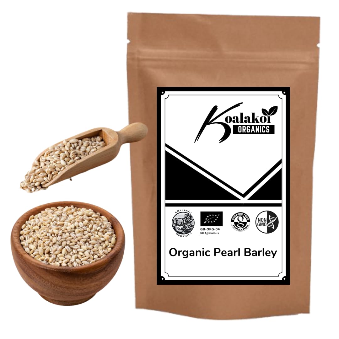 Koalakoi Organic Pearl Barley offers a range of health benefits, making it a nutritious and versatile addition to your diet. Here are key points highlighting the health advantages of Koalakoi's organic pearl barley: Rich in Nutrients: Koalakoi Organic Pearl Barley is a nutrient-dense whole grain, providing essential vitamins, minerals, and antioxidants. It contains significant amounts of fiber, B-vitamins, iron, magnesium, and selenium, contributing to overall well-being and supporting various bodily functions. Heart Health: The soluble fiber in pearl barley, particularly beta-glucans, has been linked to cardiovascular health. It helps lower cholesterol levels by binding to cholesterol in the digestive tract, promoting heart health and reducing the risk of cardiovascular diseases. Blood Sugar Regulation: The high fiber content in pearl barley aids in controlling blood sugar levels. This can be particularly beneficial for individuals with diabetes or those looking to prevent insulin resistance, promoting steady energy levels and reducing the risk of type 2 diabetes. Digestive Health: Barley is an excellent source of both soluble and insoluble fiber, supporting digestive health. The fiber content helps prevent constipation, promotes regular bowel movements, and fosters a healthy gut microbiota, contributing to overall gastrointestinal well-being. Weight Management: The fiber and complex carbohydrates in pearl barley contribute to a feeling of fullness and satiety, making it a valuable addition to weight management and control. Its low-calorie density and ability to curb appetite can support healthy eating habits. Antioxidant Properties: Pearl barley contains antioxidants, including vitamins and minerals like selenium, that help combat oxidative stress in the body. Antioxidants play a role in reducing inflammation and protecting cells from damage, contributing to overall health and longevity. Bone Health: Barley is a good source of minerals such as phosphorus, magnesium, and copper, which are essential for maintaining strong and healthy bones. Including pearl barley in your diet can contribute to bone density and reduce the risk of bone-related conditions. Improved Immune Function: The vitamins and minerals present in pearl barley, including vitamin C, iron, and zinc, play a crucial role in supporting a robust immune system. A well-functioning immune system helps the body defend against infections and illnesses. Whole Grain Goodness: As a whole grain, Koalakoi Organic Pearl Barley retains the bran, germ, and endosperm, preserving the maximum nutritional value. Choosing whole grains supports a balanced diet, providing a spectrum of nutrients that are essential for optimal health. Versatile Culinary Applications: Koalakoi Organic Pearl Barley is versatile in the kitchen, lending itself to a variety of dishes. From soups and stews to salads and pilafs, its chewy texture and nutty flavor enhance the culinary experience while providing nutritional benefits. Incorporating Koalakoi Organic Pearl Barley into your diet offers a delicious and healthful way to enjoy the numerous benefits of this whole grain. As with any dietary changes, it's advisable to consult with a healthcare professional or nutritionist, especially for individuals with specific health conditions or dietary restrictions. Nature's Wholesome Grain: Koalakoi introduces a nutritional gem with its Organic Pearl Barley, celebrating the wholesome goodness of this ancient grain. Sourced from organic farming practices, Koalakoi ensures the purity of its pearl barley, free from synthetic pesticides and GMOs, providing a natural and healthful option. Nutrient-Rich Superfood: Koalakoi's organic pearl barley is a nutrient powerhouse, offering a rich blend of essential vitamins, minerals, and antioxidants. With significant fiber content, B-vitamins, and minerals like iron and magnesium, this grain becomes a versatile and nutritious addition to a balanced diet. Heart-Healthy and Digestive Support: Beyond its culinary appeal, Koalakoi Organic Pearl Barley supports heart health through its beta-glucan-rich soluble fiber, known to lower cholesterol levels. The high fiber content also promotes digestive health, aiding in regular bowel movements and fostering a healthy gut environment. Versatile Culinary Delight: Koalakoi Organic Pearl Barley's versatility shines in the kitchen, enhancing various dishes with its chewy texture and nutty flavor. From hearty soups to wholesome salads, this grain adds both nutritional value and culinary delight to a range of recipes, making it a must-have for health-conscious food enthusiasts. INGREDIENTS 100 Organic Pearl Barley✓ Whole Grain Goodness: Being a whole grain, Koalakoi's pearl barley retains the bran, germ, and endosperm, maximizing its nutritional benefits. Choosing this whole grain option supports a balanced diet, offering a spectrum of nutrients essential for optimal health. ✓ Versatility in Cooking: Koalakoi Organic Pearl Barley adds a chewy texture and nutty flavor to a variety of dishes, showcg its versatility in the kitchen. From hearty soups to nutrient-packed salads, this grain elevates culinary experiences while providing essential nutrients. ✓Organic Purity: Sourced from organic farming practices, Koalakoi ensures the purity of its pearl barley. Free from synthetic pesticides and genetically modified organisms (GMOs), it offers a wholesome and natural choice for those seeking organic, health-conscious options. ✓ Heart and Digestive Health: This pearl barley variant supports heart health through its beta-glucan content, aiding in the reduction of cholesterol levels. Additionally, its high fiber content promotes digestive health, fostering regular bowel movements and a healthy gut environment. ✓ Nutrient-Rich Superfood: Koalakoi Organic Pearl Barley stands out as a nutrient-dense superfood, packed with essential vitamins, minerals, and antioxidants. Its rich nutritional profile includes fi