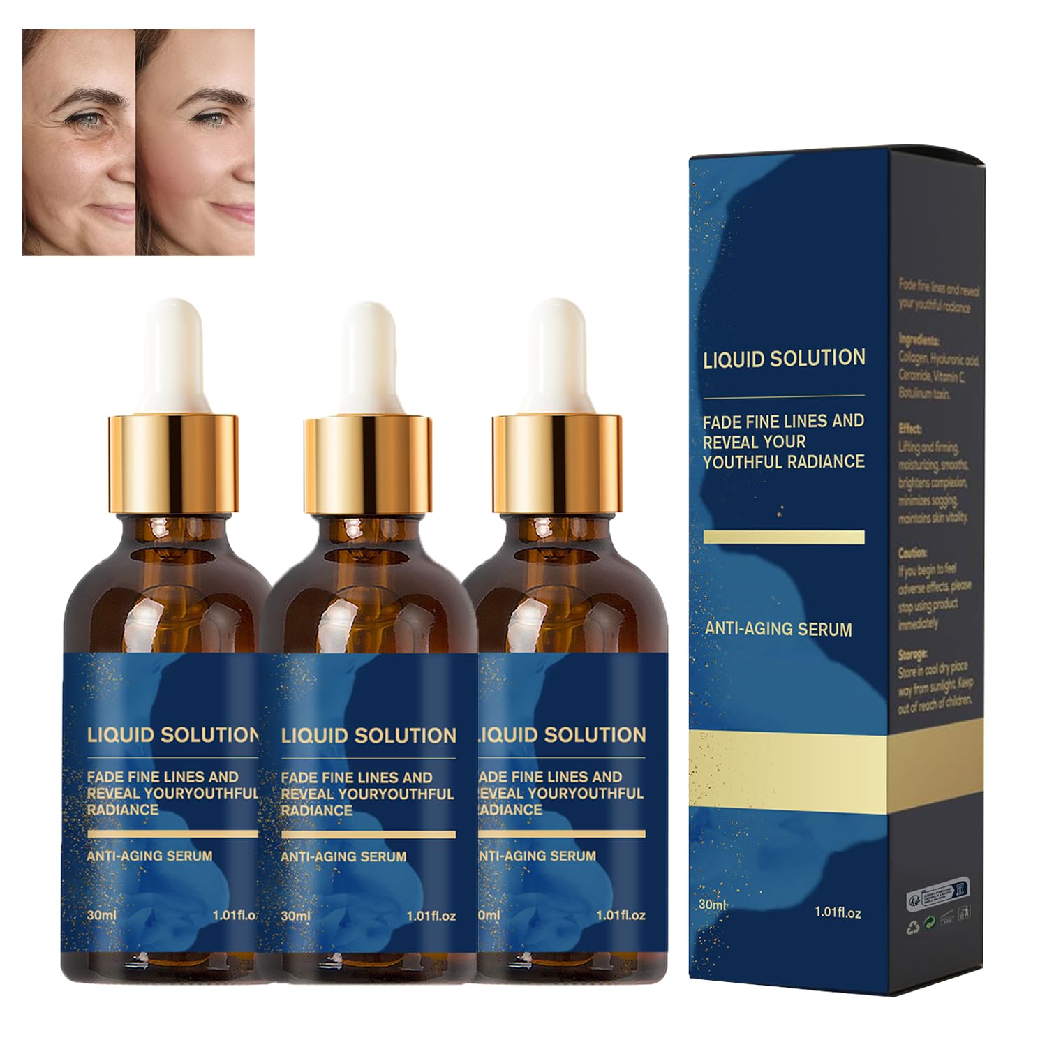 Shine with a youthful appearance, reverse the traces of time. Our anti-aging liquid solution, essence, is specially formulated to reduce wrinkles. Rich in effective anti-aging essence, it can penetrate the bottom of the skin, activate the skin's self-healing ability, effectively reduce wrinkles on the face, the corners of the eyes and neck, and make your skin tight and elastic again. SAFETY WARNING Forbidden for oral consumption, keep out of the reach of children, avoid direct sunlight and store in a cool place.Suitable for all skin types: The formula is suitable for all skin types, including dry, oily, combination and sensitive skin. It solves common skin problems such as fine lines and uneven dullness, making it great for both men and women to use. Easy to use and quickly absorbed: Easy to apply and absorb, the unique penetration technology allows the active ingredients in the product to quickly penetrate the skin surface and reach the underside of the skin, achieving efficient absorption. Tightening youthful skin: The combination of firming and lifting technology with moisturizing and nourishing ingredients can effectively improve skin firmness and reduce sagging caused by aging. Promote Collagen Production: The unique ingredients in this essence can promote the production and arrangement of new collagen, improving skin support and making the skin young and bright from within. Effectively Reduce Wrinkles: The anti-aging essence in the essence liquid can target the deep wrinkles of the skin, especially the aging-prone areas such as face, corner of the eyes and neck, and can effectively fade the fine lines and deep wrinkles.Rimpelverwijderende gezichtsessence-oplossing, anti-aging vloeibare oplossing essence oplossing, vermindert rimpels op gezicht, ooghoeken en nek, mollige huid, geschikt voor alle huidtypes (3) Stralen met een jeugdige uitstraling, draai de sporen van de tijd om. Onze anti-aging vloeibare oplossing, essence, is speciaal ontwikkeld om rimpels te verminderen. Rijk aan effectieve anti-aging essentie, het kan doordringen in de bodem van de huid, activeren het zelfherstellende vermogen van de huid, effectief verminderen rimpels op het gezicht, de hoeken van de ogen en nek, en maak uw huid strak en elastisch weer. VEILIGHEIDSWAARSCHUWING Verboden voor orale consumptie, buiten het bereik van kinderen bewaren, direct zonlicht vermijden en op een koele plaats bewaren.Geschikt voor elk huidtype: De formule is geschikt voor alle huidtypes, inclusief de droge, vette, gecombineerde en gevoelige huid. Het lost veel voorkomende huidproblemen op zoals fijne lijntjes en ongelijkmatige dofheid, waardoor het zeer geschikt is voor zowel mannen als vrouwen om te gebruiken. Eenvoudig te gebruiken en snel opgenomen: eenvoudig aan te brengen en te absorberen, de unieke penetratietechnologie zorgt ervoor dat de actieve ingrediënten in het product snel het huidoppervlak kunnen binnendringen en de onderkant van de huid kunnen bereiken, waardoor een efficiënte absorptie wordt bereikt. Verstrakking van de jeugdige huid: de combinatie van verstevigende en liftende technologie met hydraterende en voedende ingrediënten kan de stevigheid van de huid effectief verbeteren en verslapping veroorzaakt door veroudering verminderen. Bevorder de aanmaak van collageen: de unieke ingrediënten in deze essentie kunnen de aanmaak en rangschikking van nieuw collageen bevorderen, waardoor de ondersteuning van de huid wordt verbeterd en de huid van binnenuit jong en helder wordt. Effectief rimpels verminderen: de anti-aging essentie in de essence vloeistof kan zich richten op de diepe rimpels van de huid, met name de verouderingsgevoelige gebieden zoals gezicht, ooghoek en nek, en kan de fijne lijntjes en diepe rimpels effectief vervagen.