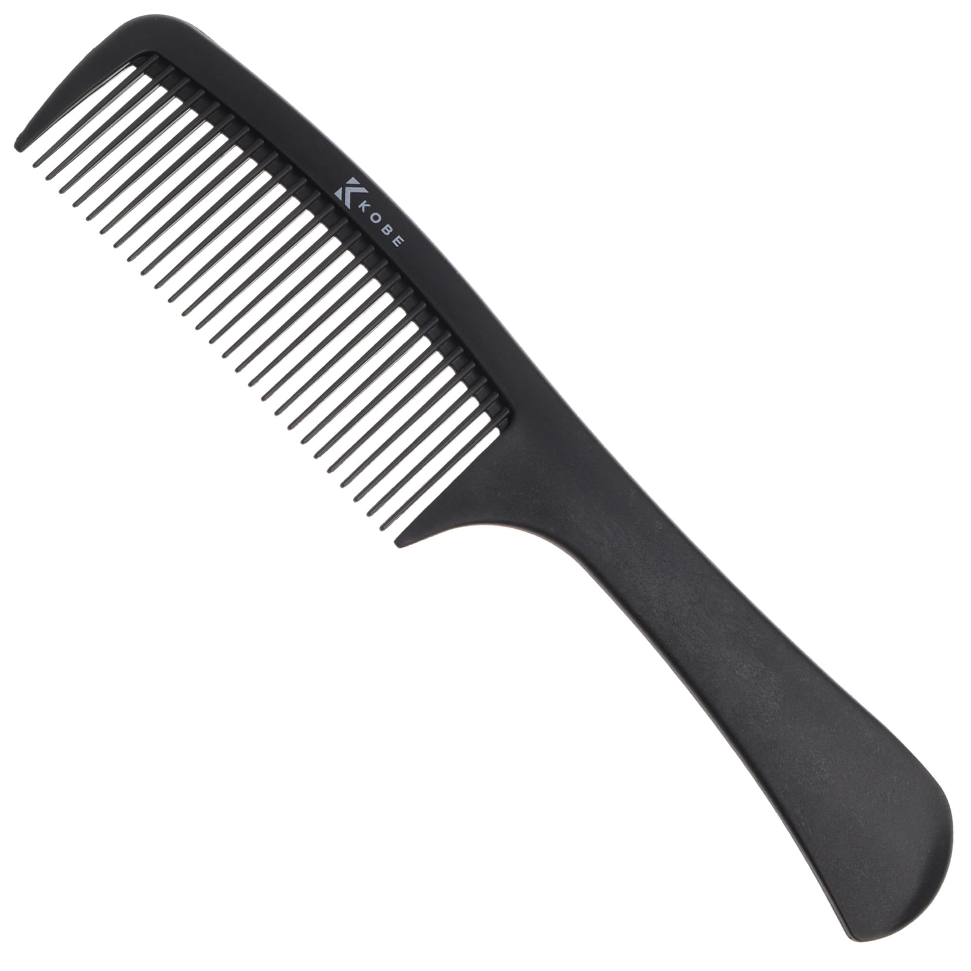 This Wide Teeth Detangling Comb is versatile and perfect for all hair types and styles with its 220mm length. Ideal detangling comb for wet hair and all general hairdressing techniques. The Kobe combs are specifically crafted for the demanding conditions of a bustling hair or barber salon. These combs are built to withstand continuous usage effortlessly cleaned for optimal hygiene. This product features a wide tooth pattern for normal and fine hair, to facilitate easy detangling. The round teeth are gentle on the scalp. They're built to last and withstand tough wear and tear. Kobe combs are designed to be lightweight and durable, with the added strength of carbon fiber. This makes them tougher than regular plastic combs, with excellent resistance against chemicals static. The Kobe Pro Wide wide tooth comb is specially crafted for heavy usage. Its smooth finish provides a comfortable grip for easy combing through tangled hair. Ideal for wet or frizzy hair.