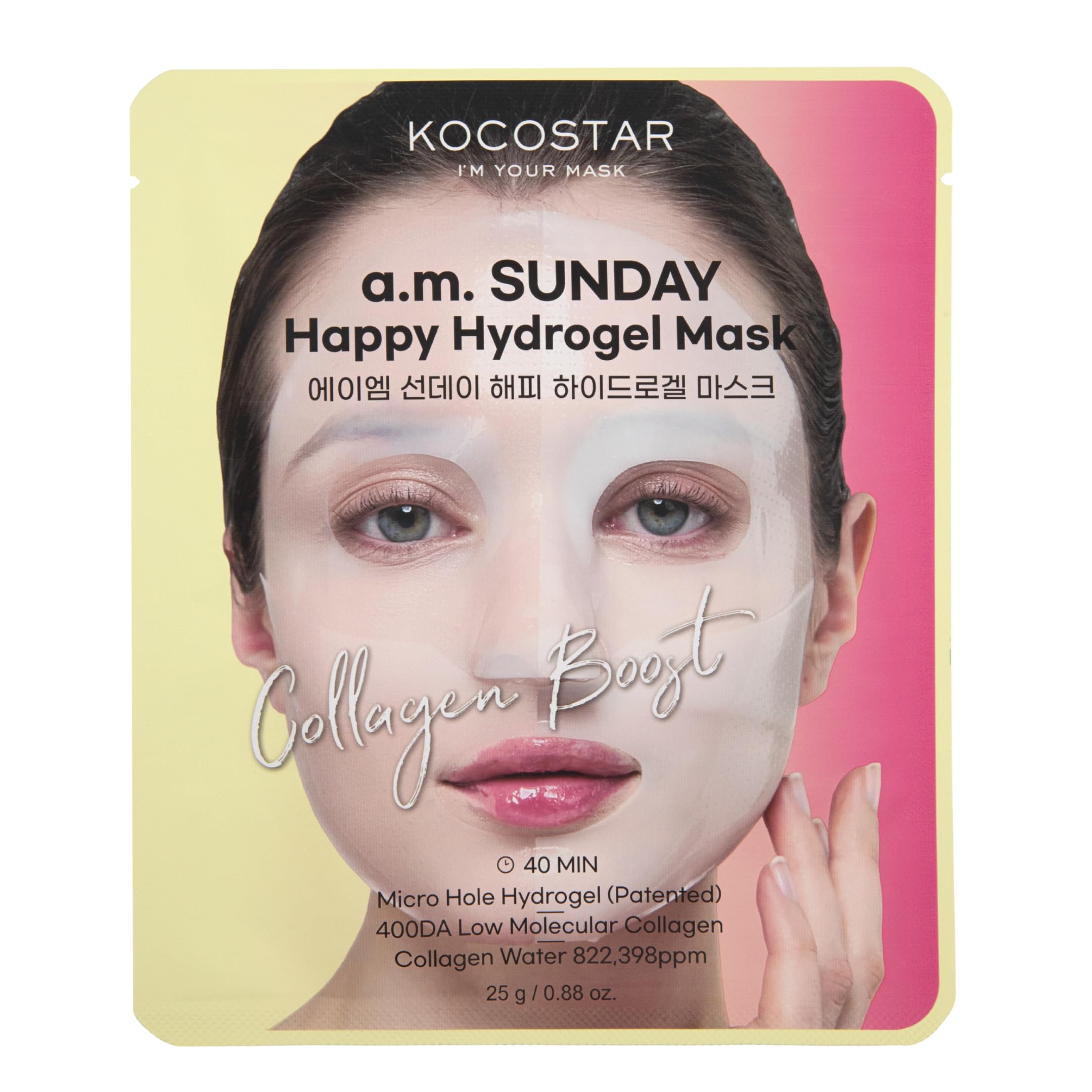 KOCOSTAR Happy Masque Hydrogel - 40 Min. Raffermissant Coréen Face Mask Sheet pour Femmes avec de l'eau de collagène Extrait - Hydratant Collagène Soins du Visage - A.M. SUNDAY (1 Feuille)