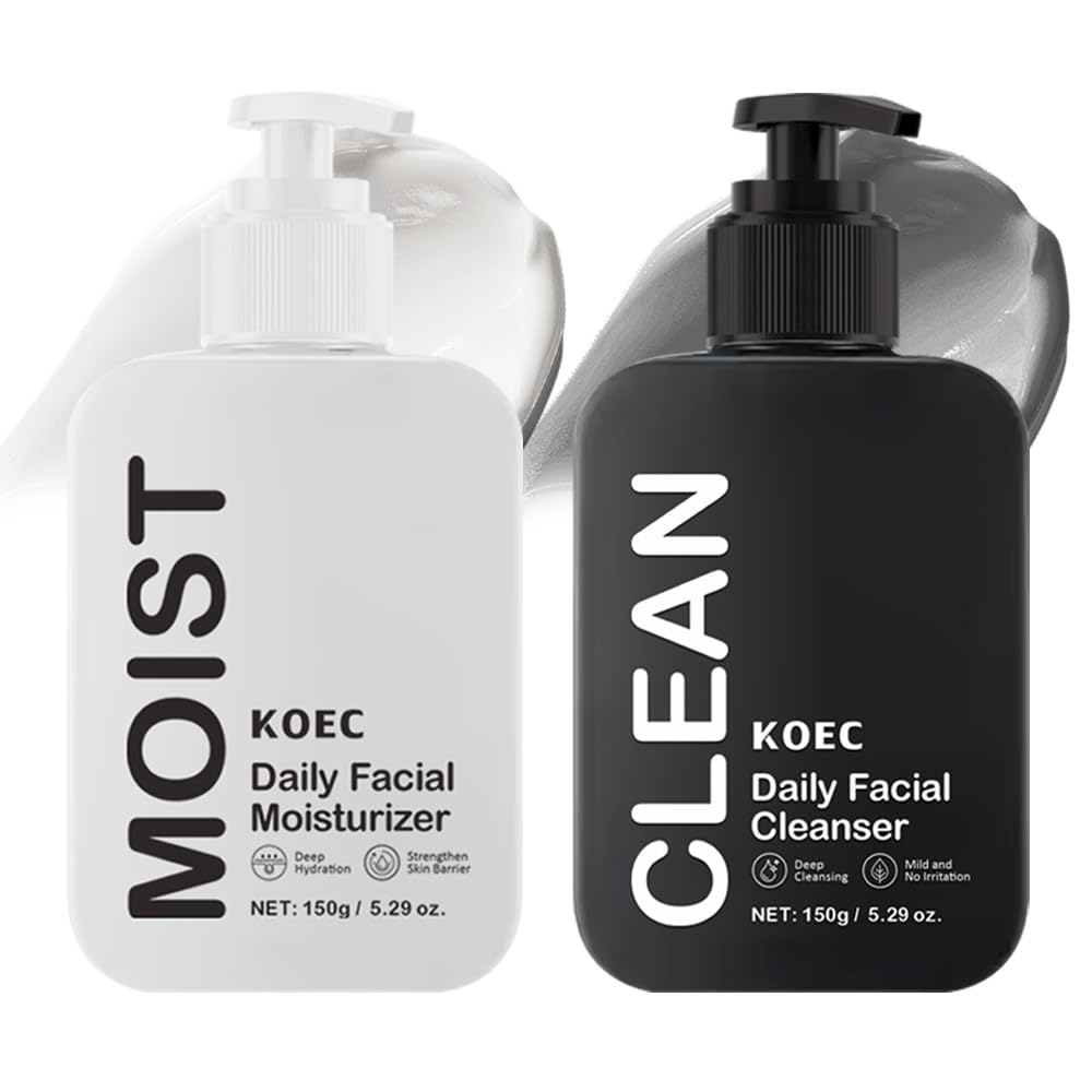 How to Use Apply the cleanser to wet hands, lather, and gently massage onto face. Rinse thoroughly with warm water. Follow with a small amount of moisturizer, massaging until fully absorbed for deep hydration. Simplified Skincare Routine No complicated steps—just cleanse and moisturize. This Facial Cleanser Moisturizer set offers a simple two-step routine for effortless daily care, perfect for men who want effective skincare without the fuss. Achieve healthier, smoother skin with minimalist yet high-performance approach. Gentle Natural Formula Designed with plant-based extracts, both products are fragrance-free and gentle, making them suitable for all skin types—dry, oily, or sensitive. The lightweight texture ensures comfort without irritation. Efficient cleaning Deep Hydrating This powerful duo works together to remove impurities and dead skin cells while delivering deep hydration. The result? A clean, moisturized, and firmer complexion that feels fresh—never greasy or tight. Ultimate Duo for Men's Skincare The facial cleanser, infused with Bamboo Charcoal and Green Tea, deeply cleanses pores, absorbs excess oil, and combats skin redness. Meanwhile, the moisturizer with Panthenol soothes and repairs the skin, keeping it balanced and refreshed day and night.