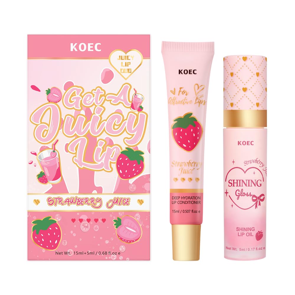 KOEC Strawberry Juicy Lip Duo,this innovative two-in-one system combines a deeply repairing lip balm with a high-shine lip oil to transform dry, lackluster lips into a vision of supple, glossy perfection. ✓Target hydration and texture all day ✓Deep Nourishment Repair ✓Repairing lip balm high-shine lip oil