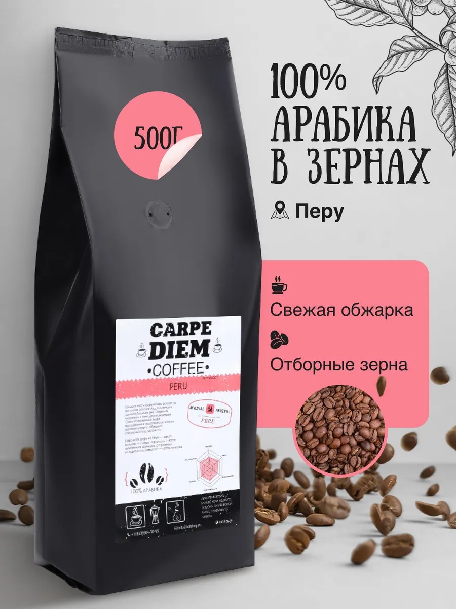 Зерна кофе из Перу выращиваются на высокогорных плантациях, расположенных в регионе Анд, где идеальные климатические условия, богатые почвы и чистый воздух способствуют формированию насыщенного и выразительного аромата. Каждое зерно собирается вручную, что позволяет отбирать только самые спелые и качественные плоды, что делает его особенно ценным.