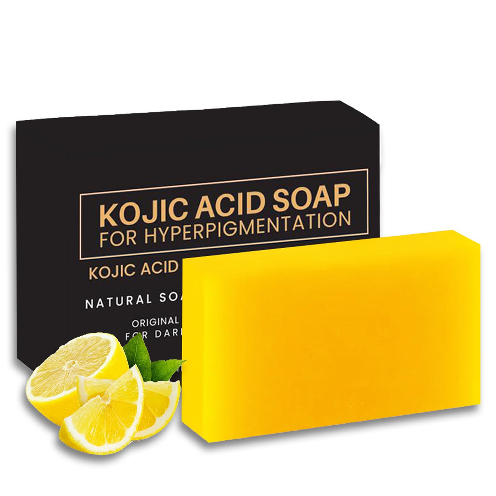 FEATURES: 1. Brightens Skin: Our kojic acid soap contains effective skin whitening ingredients such as Vitamin C, turmeric, and ginger. They help even out skin tone and provide a natural glow. 2. Moisturizes and Nourishes: Our carefully selected plant-based formula combines rich ingredients like shea butter, hyaluronic acid, and olive oil to provide deep nourishment and hydration, keeping your skin smooth and soft. 3. Effective Exfoliating: Our soap's kojic acid content helps exfoliate the top layer of dead skin cells, revealing a fresh, youthful glow and helping to rejuvenate the skin. 4. Suitable for All Skin Types: Our dark spot remover soap is gentle enough to use on all parts of the body, including hands, feet, and face. It maintains a natural balance between oil and moisture levels on your skin. 5. Reduces Acne and Blackheads: Our soap works by effectively removing excess oil and dirt, helping to prevent and reduce the appearance of acne, blackheads, and other blemishes. Tips: For external use only. If there is redness or allergic reaction, please stop using it immediately. Please keep it away from children. Store in a cool and shade place.Say goodbye to dull and uneven skin with our Kojic Soap. Use it daily to achieve a brighter and more even complexion. This brightening soap is perfect for those with hyperpigmentation or those looking to simply brighten their complexion. Feel confident and beautiful in your own skin with the help of our Turmeric Kojic Acid Soap. Our face soap is mild and non-irritating, and can be used on all parts of the body, such as hands, feet and face, to balance the oil-water balance of skin and maintain natural moisture, and is suitable for all skin types. This skin brightening soap is perfect for those looking for a simple yet effective solution to brighten and lighten their complexion. Our turmeric and kojic acid soap is formulated to be gentle on your skin while still providing maximum results. Kojic acid is a natural ingredient known for its skin lightening properties. By inhibiting the production of melanin, it helps to reduce hyperpigmentation and dark spots, leaving you with an even complexion. Along with turmeric, our Kojic Soap helps to improve the appearance of your skin, giving it a radiant and youthful glow. Introducing our Kojic Acid Soap - the ultimate solution to your skin brightening and lightening needs! Made with natural ingredients, this soap bar combines kojic acid and turmeric to provide you with a powerful skin brightening experience.
