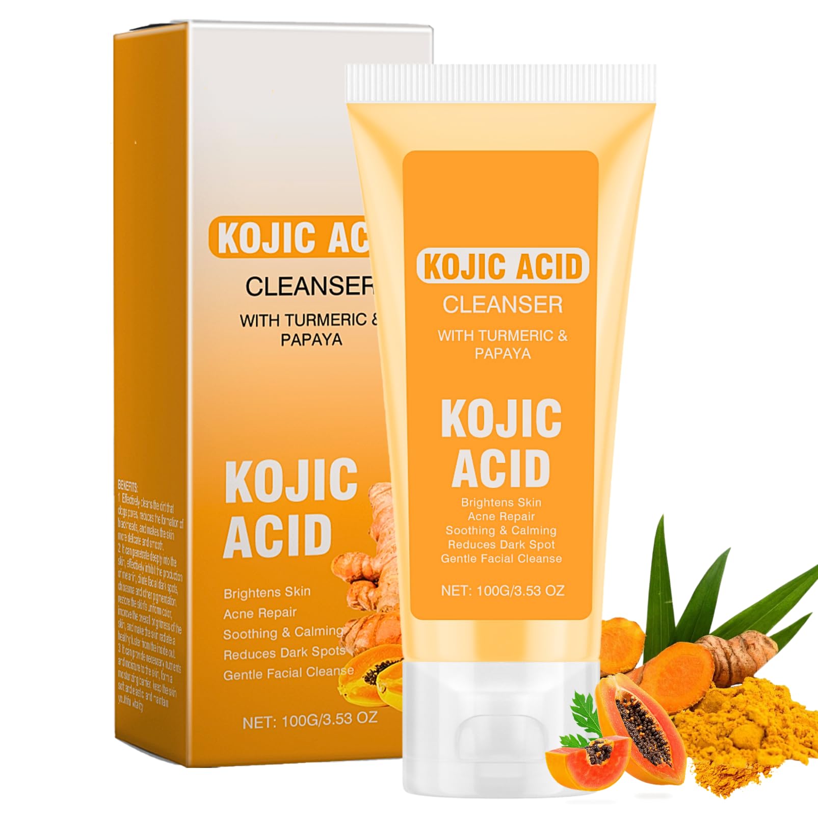 Kojic Acid & Turmeric Cleanser is a deep cleansing and brightening foaming cleanser. Our hydrating cleanser penetrates deeply clean pores, remove blackheads, and fades dark spots, Acne Scars, excess oil and dirt and makeup residue while maintaining the skin's essential moisture balance and avoiding tightness, making it suitable for daily use by all skin types. Kojic Acid & Turmeric Facial Wash Benefits: ----Even Tone :penetrate deeply into the skin, effectively inhibit the production of melanin, dilute facial dark spots, chloasma and other pigmentation, restore the skin's uniform color. ----Moisturizing Oil Control : Add Some Water and Knead Easily, Rich Foam Can Be Good to Deep Clean Skin While Repairing and Nourishing Hydrating the Skin,and Remove Grease,Balance Water Oil,smoothing Dry Skin. ---- Exfoliation: Gently removes dead skin cells and stimulates the skin's metabolism, allowing it to breathe better. ---- Pore Tightening: Regular use helps to minimise the appearance of pores and reduce the formation of blackheads and whiteheads. ---- Smooths skin texture: Improves skin texture over time, leaving skin feeling silky smooth to the touch. -Deep Nourishing for Very Dry Skin and all skin Types Directions Of Safe Use: 1. Wet your face with warm water 2. Take an appropriate amount of cleansing exfoliating gel and rub it into foam, then use foam to gently cleanse your face in circular motions. 3.Finally rinse with clean water. ? ????Specification: Product Name: Kojic Acid & Turmeric Pore Cleanser Content: 100g Shelf Life: 3 years Applicable Skin Type:For all skin ?????This natural deep pore cleanser is very suitable for giving to them on Thanksgiving, Christmas and other holidays. SAFETY WARNING For external use only. Avoid contact with eyes. Keep away from naked flame or direct heat sources.?Easy To Use?Turmeric cleanseris formulated with foam and is easy to use for a refreshing cleansing experience. Simply wet your face, apply the face wash with your fingertips or a damp towel, and massage gently in circular motions. ?Breathable & Comfortable?This foaming face wash is rich in natural plant moisturizing ingredients such as turmeric and kojic acid, which won't feel tight when used, making your skin breathe better and your pores more delicate. ?Dense Foam & Hydrating ?The kojic acid foaming facial cleanser is Very Soft and Smooth, mild and non irritating. Turmeric kojic acid foaming facial cleanser is very suitable for oily skin and dry skin. It can effectively control oil, make your skin mildly clean, and provide a skin state of high hydration and moisture. ?Solve Multiple Skin Problems? Our turmeric and kojic acid blemish control cleanser can help deeply clean pores, remove blackheads, and fades dark spots, Acne Scars, excess oil and dirt, relieve daily skin stress, prevent skin acne, nourish skin, and enhance skin water. Natural facial cleanser balance skin oil and water for a radiant complexion, leaving the skin feeling fresh and rejuvenated. ?Improve Dull Skin?Our Kojic Acid & Turmeric Face Wash Infused with vitamin C and other natural exfoliating ingredients that helps to reduce the appearance of dark spots and hyperpigmentation, soothe and purify the skin, promote an even skin tone, while harnessing antioxidant properties to enhance skin vitality. Daily skin care use kojic acid cleanser protect skin from environmental damage.
