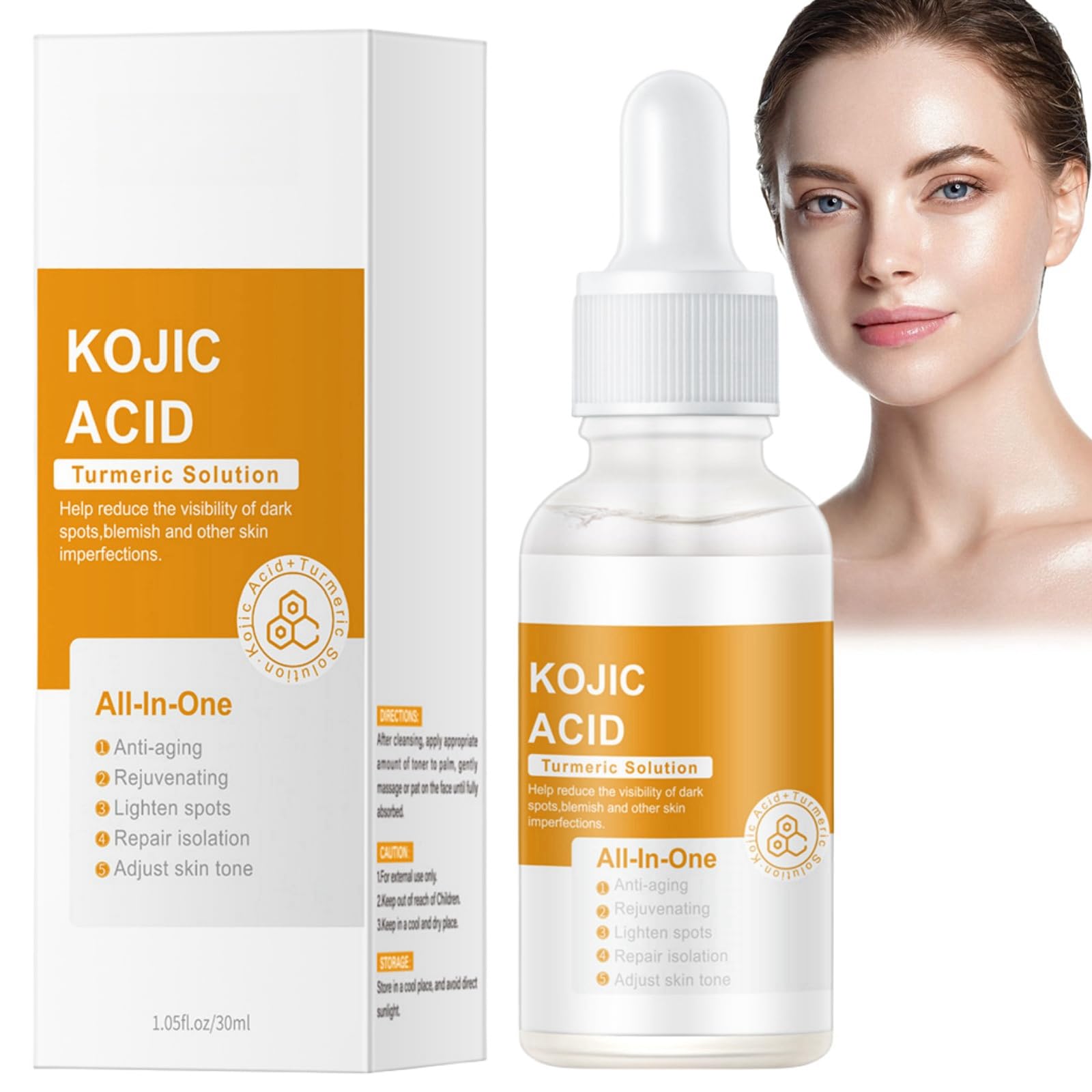 The kojic acid turmeric oil can gently nourish the skin, effectively repair damaged skin.Kojic acid serum for dark spots remover reduce skin oxidation,glow and dull skin, make your skin shine and smooth, lasting clear and moist! How to Use: 1. Drop an appropriate amount of turmeric oil dark spot corrector into your palm. 2. Apply kojic acid moisturiser glow serum onto the desired area. 3. Massage with the use of the turmeric serum for reduce fine lines in circular motions until absorbed. 4. Use acne face serum daily for best results. Package Includes: 1 PCS* Kojic Acid Turmeric Oil SAFETY WARNING no?Widely Use?Turmeric face serum is applicable to dark spots on the face, elbows, knees, underarms and other parts of the body.Turmeric serum for face recommended for all skin types.The face serum helps heal dry skin, damaged skin, aging skin, stressed skin, uneven skin, acne-prone skin. ?Easy to Use?Drop an appropriate amount of oil face serum into your palm.Apply skin repair oil into the desired area.Massage with the skin whitening serum in circular motions until absorbed. Use turmeric face cream daily for best results. ?Moisturizing & Removing?This dark spot correcting glow serum will offer your skin with refreshing hydration, effectively moisturizing and firming skin,turmeric dark spot corrector serum dark spot removal reduces the growth of fine lines and wrinkles,dark spot removal keeps skin smooth and lifting.The dark spots remover can purposefully handle skin aging problems such as deep wrinkles, fine lines, puffy eyes, dark circles, and sagging skin, etc. ?HighPenetration?Our turmeric serum for reduce fine lines stay in the skin for up to 12 hours, and the slow release of Kojic Acid, complexion, while acne face serum promotes skin collagen synthesis, dilute melanin precipitation.Anti aging serum helps restore the skin complexion to look more vibrant and firm, soften and keep your skin hydrated all day. ?Say Goodbye to Dark Spots?Kojic acid turmeric oil serum can effectively reduce hyperpigmentation, minimize spots and wrinkles for fairer and turmeric oil dark spot corrector elastic skin with a radiant glow.The high moisturizing ingredients in kojic acid serum for dark spots remover can deeply replenish the moisture needed by the skin,kojic acid moisturiser glow serum leaves it hydrated and elastic.