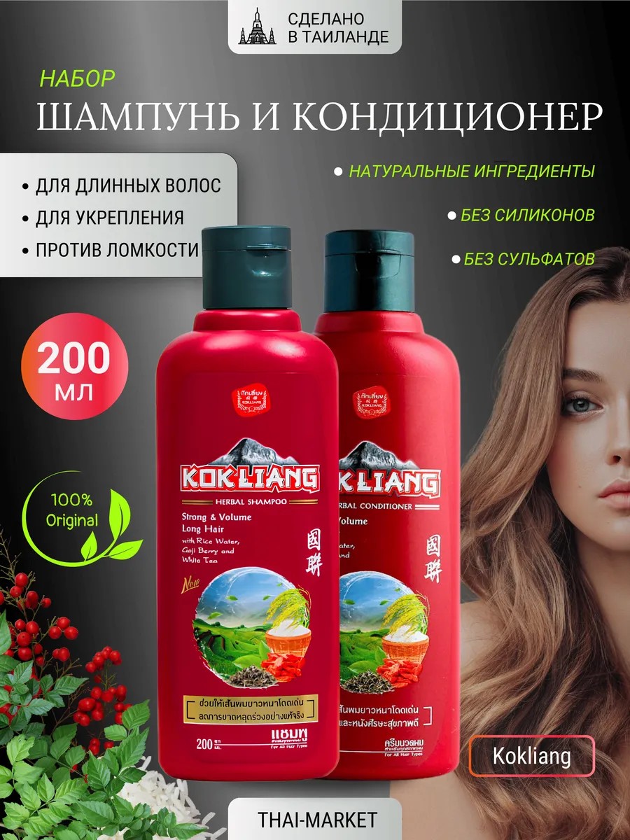 The Kokliang Strong & Volume Long Hair Shampoo and Conditioner Set is a professional care product for the whole family from Thailand. These products are designed for those who want to strengthen long hair, add volume, and maintain its health. These products are ideal for women and men who want to gently cleanse and restore its structure, while stimulating growth and preventing hair loss.