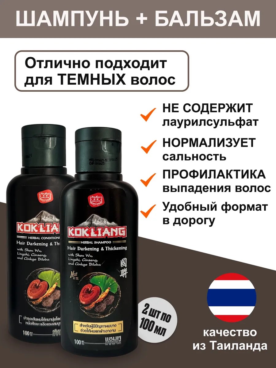KOKLIANG Thailand Шампунь и Кондиционер для темных волос, 2 шт по 100мл