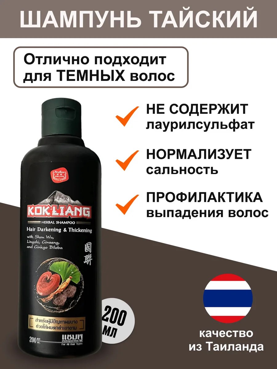 KOKLIANG Thailand Шампунь для темных волос против выпадения и для блеска 200мл