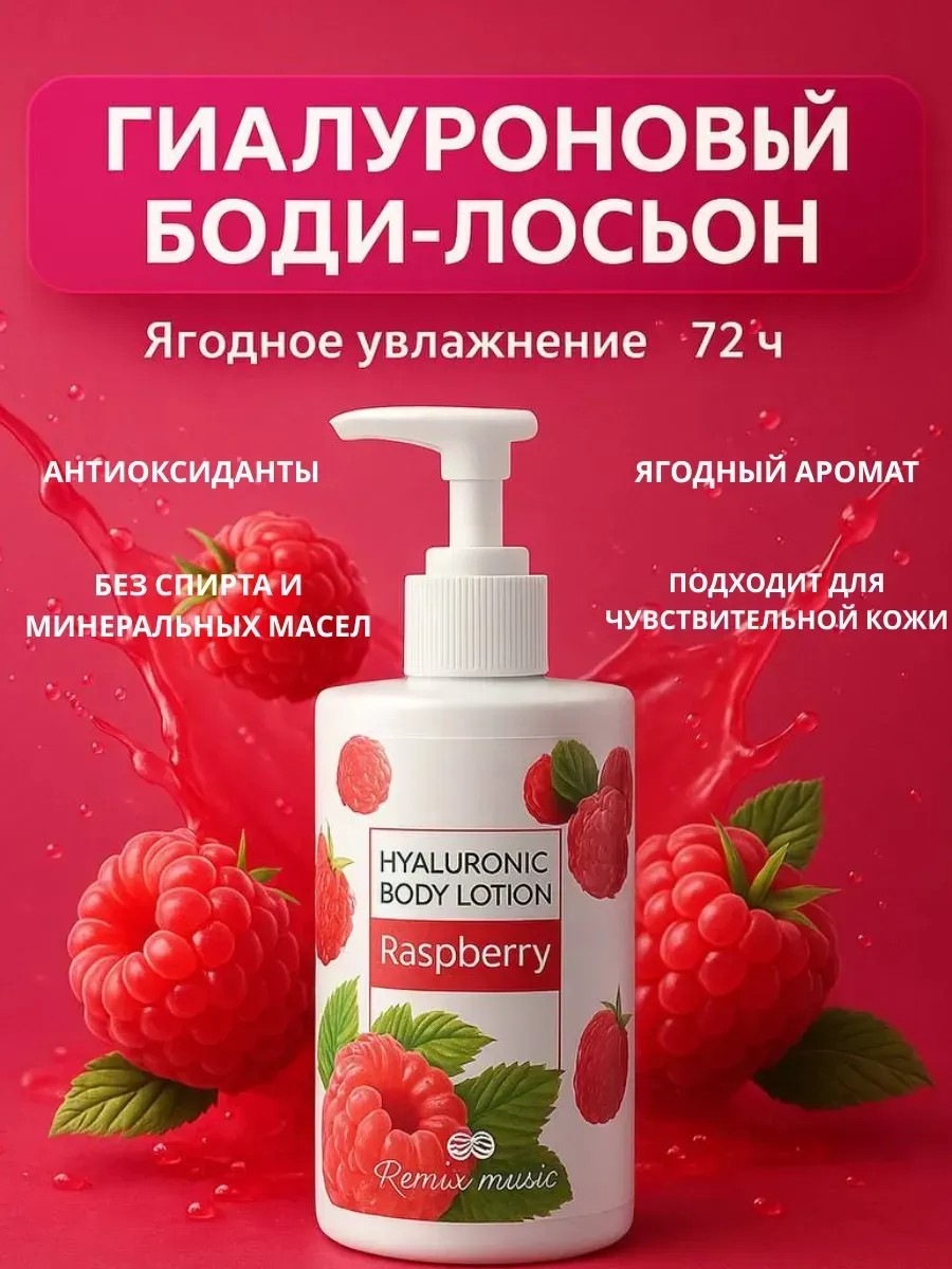 This hyaluronic body lotion with raspberry scent is a versatile product for intensive hydration and skin care.