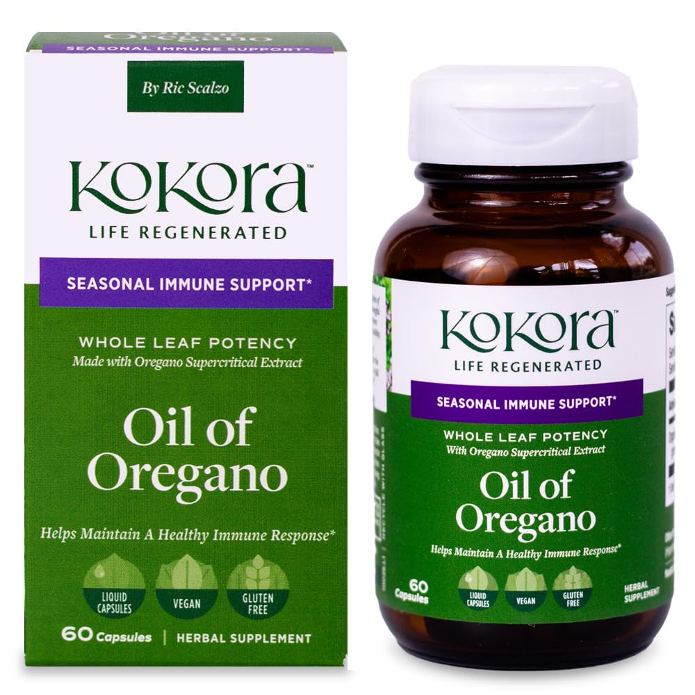 Harness the power of nature with Kokora Oil of Oregano, a premium, supercritical CO2-extracted oregano leaf supplement carefully crafted for potency, purity, and seasonal immune support. Each capsule delivers a minimum of 50 mg of the active compound carvacrol from organically sourced European oregano leaves, captured through a solvent-free process that preserves the full botanical integrity and therapeutic potential of the herb. Thanks to Kokora's regenerative-farmed sourcing and lab-tested standards, you get a reliably potent extract designed for those seeking total wellness, especially during fall and winter months. Non-GMO, organic, and free from harsh solvents just clean, concentrated oregano in every bottle for your daily wellness regimen.Convenient Daily Supplement: Easy to Use. Take 1 capsule twice daily as needed. Perfect for busy lifestyles, no preparation, no mess, just pure oregano power in a simple capsule. Holistic Wellness Focused: Oregano oil has been traditionally associated with antioxidant, antifungal, and anti-inflammatory benefits, which may support healthy gut function, respiratory health, and overall internal balance when combined with a healthy lifestyle. Pure Clean Ingredients, No Harsh Solvents: Made from organic oregano leaves harvested in Europe, extracted without solvents, and free from fillers or unnecessary additives, giving you clean supplementation you can trust. Highly Potent, Supercritical-Extracted Oregano: Using a supercritical CO2 extraction method preserves the plant's natural compounds, ensuring maximum potency and delivering at least 50 mg of carvacrol per serving, a compound recognized for its strong antioxidant and antibacterial properties. Support Seasonal Wellness Immune Health: Kokora Oil of Oregano is formulated specifically to support a healthy immune response, making it an ideal supplement during cold flu season or anytime you want extra immune system support.
