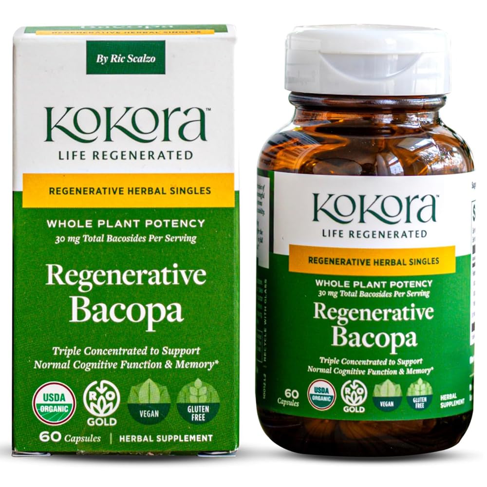 Easy Daily Support - Just two capsules daily, between meals, provide natural support for focus, a calm nervous system, and a balanced mood. . Clean Extraction Transparent Sourcing -Extracted with organic ethanol, free from synthetic solvents, and third-party tested for quality, safety, and active compound verification. Regenerative Organic Certified Bacopa - Grown in nutrient-rich living soil on Kokora's regenerative farm in Costa Rica to maximize purity, potency, and plant vitality. Triple-Concentrated Potency -Features a proprietary blend of whole-herb powder plus freeze-dried extract for enhanced bioavailability and effectiveness. Cognitive Support Mental Clarity - Bacopa monnieri formula designed to support memory, learning, and overall cognitive performance with a clinically aligned level of bacosides. .