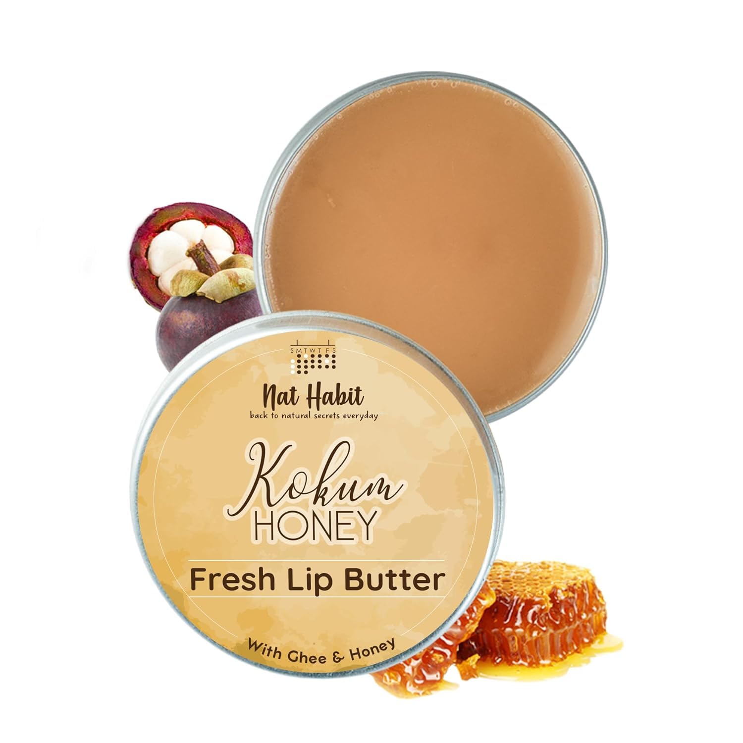 Kitchen fresh ultra moisturising Lip Butter made of Desi Ghee & Raw Honey. The Kokum Honey lip butter is specially targeted for All. have a distinct skin cell structure that needs moisturisation & nourishment but tends to clog more. Suited for these special needs, this lip butter has been packed with Kokum Honey , grapeseed oil, kokum butter, desi ghee, eucalyptus raw honey, shea butter & other pure cold pressed oils. The butter provides express lip repair, moisturising nourishment and protection against aging, darkening, discoloration & pigmentation. ZERO chemicals & preservatives. ZERO mineral oil & paraffins.Excellent Lip Mask : Meant for night lip masking to aid in lip lightening & restoration of plumpness. Desi ghee's natural properties help repair and soothe chapped or damaged lips, for quicker recovery. Natural Pink Lips : Returns natural pink/rednss of lips by restoration & repair of lip tissue. Regular usage is recommended if heavy tea / coffee consumption, after alcohol & smoking, if long AC exposure, before lip makeup & before swimming. Dark / Tanned Lips Lightening : Infused with Fresh Mint & Rose Petals, this helps fight ageing and darkening. With regular usage, lips lighten back to natural pink shade. Ingredients -Desi ghee, eucalyptus honey, kokum butter, shea butter & pure cold pressed oils. Kokum - The natural healing properties of kokum help soothe and repair chapped or cracked lips and helps in faster recovery. Desi Ghee -It contains vitamins A, D, E, and K, along with beneficial nutrients, which support overall lip health. Raw Honey - Raw honey has natural that can aid in soothing chapped or cracked lips. Express Repair Of Dry, Chapped Lips: All Our Lip Butters, Made Of Honey, Desi Ghee And Shea Have Excellent Regeneration Properties. They Are Specially Meant For Deep Moisturisation, Repair - They Leave Lips Super Soft Right From The First Use. Item Type - Lip Butter, Our lip balm is enriched with natural and nourishing butters, providing deep hydration and care for your lips. Experience a subtle and natural tint from that adds a touch of colour to your lips, enhancing your natural beauty.