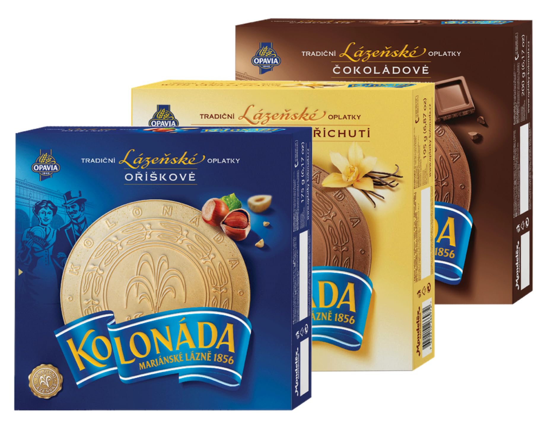These thin, freshly baked waffles are a symbol of traditional courtly pleasure and were once enjoyed by many famous figures. Among those who loved these warm treats while strolling along sunlit colonnades were King Edward VII of England, composer Johann Strauss, and writer Jan Neruda. Indulge in the delicate pleasure of hazelnut wafers (175g), the classic elegance of vanilla wafers (195g), and the irresistible richness of chocolate wafers (200g). Perfect for any time you want to treat yourself to something special. INGREDIENTS Hazelnut waffles with hazelnut filling (61 ): sugar, wheat flour, vegetable fats (palm, palm kernel and rapeseed oil), hazelnuts 4 , milk fat, wheat starch, dried egg yolk, emulsifier (soy lecithin), ground cinnamon, flavorings, table salt. Cocoa waffles with vanilla filling (69 ): wheat flour, sugar, vegetable fat and oil (palm, rapeseed oil), dried whey (from milk), maltodextrin, fully hardened palm fat, dried whole milk, low-fat cocoa powder 1.2 , dried egg yolks, emulsifiers (soy lecithin, sunflower lecithin), natural flavoring (vanilla extract), color (ammonium caramel), flavorings, table salt. Chocolate Waffles (71 ): Wheat flour, sugar, fully hardened palm oil, vegetable fat and oil (palm, rapeseed oil), lactose (milk), chocolate 7 (low-fat cocoa powder, cocoa mass, sugar), cocoa powder, dried whey (whole milk), dried egg yolk, dried egg yolk, emulsifiers (sodium hydroxide, sunflower lecithin), color (ammonium caramel), flavorings, table salt. SAFETY WARNING This product may contain traces of nuts (including hazelnuts) and contains allergens such as gluten (wheat), milk (including lactose), eggs, cocoa, and soy. People allergic to these ingredients should avoid this product. See moreOPAVIA Kolonáda Kurortoblaten Mix de trois saveurs de noisette, chocolat et vanille 570 gDESCRIPTION DU PRODUIT DESCRIPTION DU PRODUIT Ces fines gaufres fraîchement cuites sont un symbole du plaisir traditionnel du cours et étaient autrefois appréciées par des personnalités célèbres. Parmi les amoureux de ces délices chauds dégustés lors d'une promenade sur des colonnades ensoleillées, on comptait le roi anglais Edward VII, le compositeur Johann Strauss et l'écrivain Jan Neruda. Offrez-vous le plaisir délicat des feuilles de noisette (175 g), l'élégance classique des feuilles de vanille (195 g) et l'irrésistible abondance des feuilles de chocolat (200 g). Parfait pour chaque moment où vous voulez vous offrir quelque chose de spécial. INGRÉDIENTS Gaufres de noisette garnies de noisette (61 ) : sucre, farine de blé, graisses végétales (palme, palmiste et huile de colza), noisettes 4 , graisse de lait, amidon de blé, jaune d'œuf séché, émulsifiant (lécithine de soja), cannelle moulue, arômes, sel de table. Gaufres de cacao garnies à la vanille (69 ) : farine de blé, sucre, graisse végétale et huile (palme, huile de colza), lactosérum séché (à base de lait), maltodextrine, graisse de palme entièrement durcie, lait entier séché, poudre de cacao faible en gras 1,2 , jaunes d'œufs secs, émulsifiants (lécithine de soja, lécithine de tournesol. hin), arôme naturel (extrait de vanille), colorant (caramel d'ammonium), arômes, sel alimentaire. Gaufres au chocolat (71 ) : farine de blé, sucre, graisse de palme entièrement durcie, graisse végétale et huile (palme, huile de colza), lactose (lait), chocolat 7 (poudre de cacao faible en gras, pâte de cacao, sucre), cacao en poudre, lactosérum séché (lait entier), jaune d'oeuf séché, jaune d'oeuf séché. mulsificateurs (So) jalecithine, lécithine de tournesol), colorant (caramel d'ammonium), arômes, sel de table. AVERTISSEMENT DE SÉCURITÉ Le produit peut contenir des traces de noix (y compris les noisettes) et contient des allergènes tels que le gluten (blé), le lait (y compris le lactose), les œufs, le cacao et le soja. Les personnes allergiques à ces ingrédients doivent éviter ce produit. Voir plus