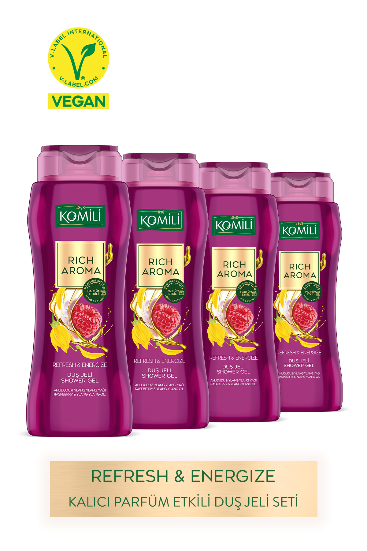 Komili Rich Aroma Shower Gel Set - Raspberry & Ylang Ylang - Lasting Perfume Effect - 4X500 ML