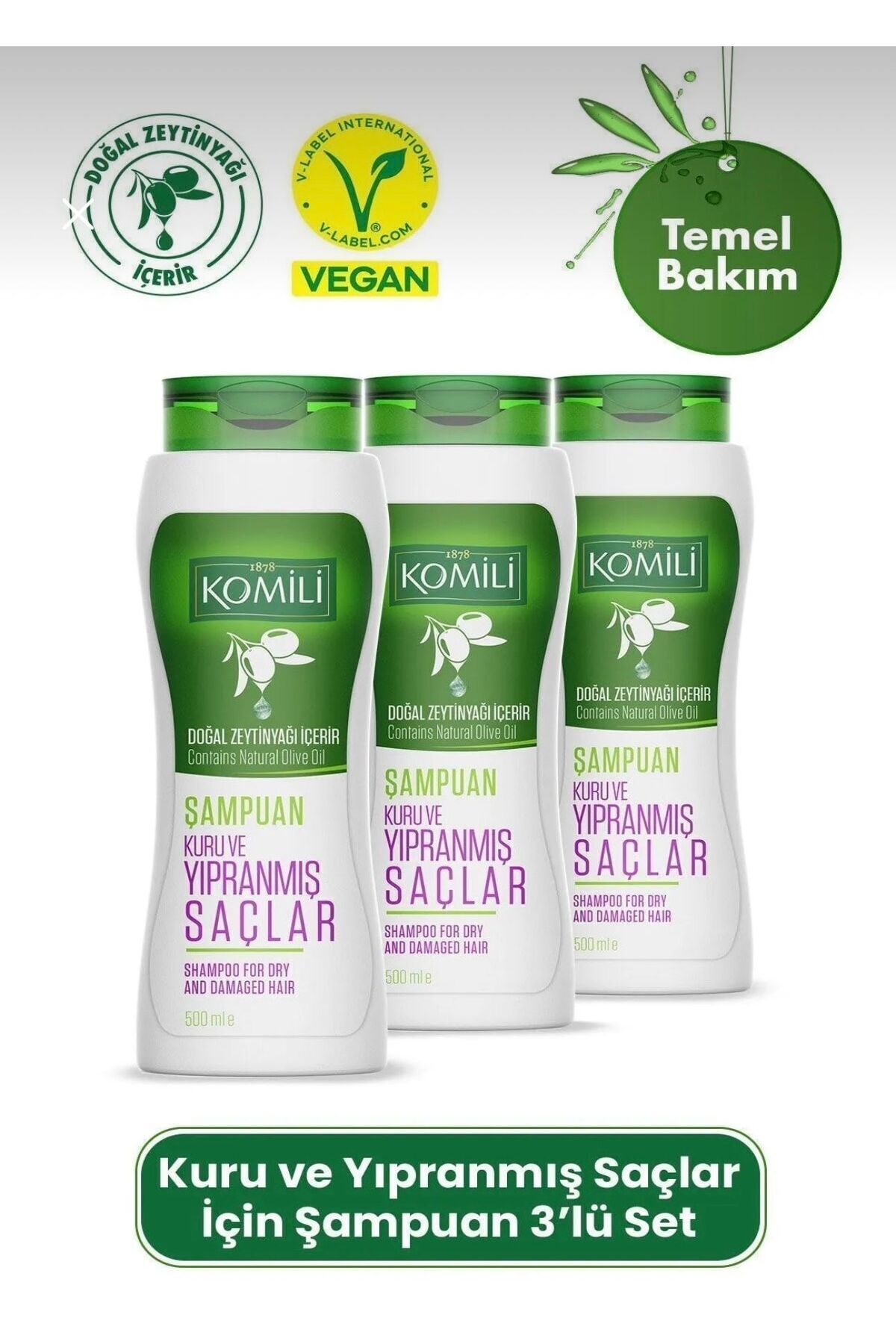 Komili vegan basic care shampoo for dry and damaged hair set of 3 3x500 ml