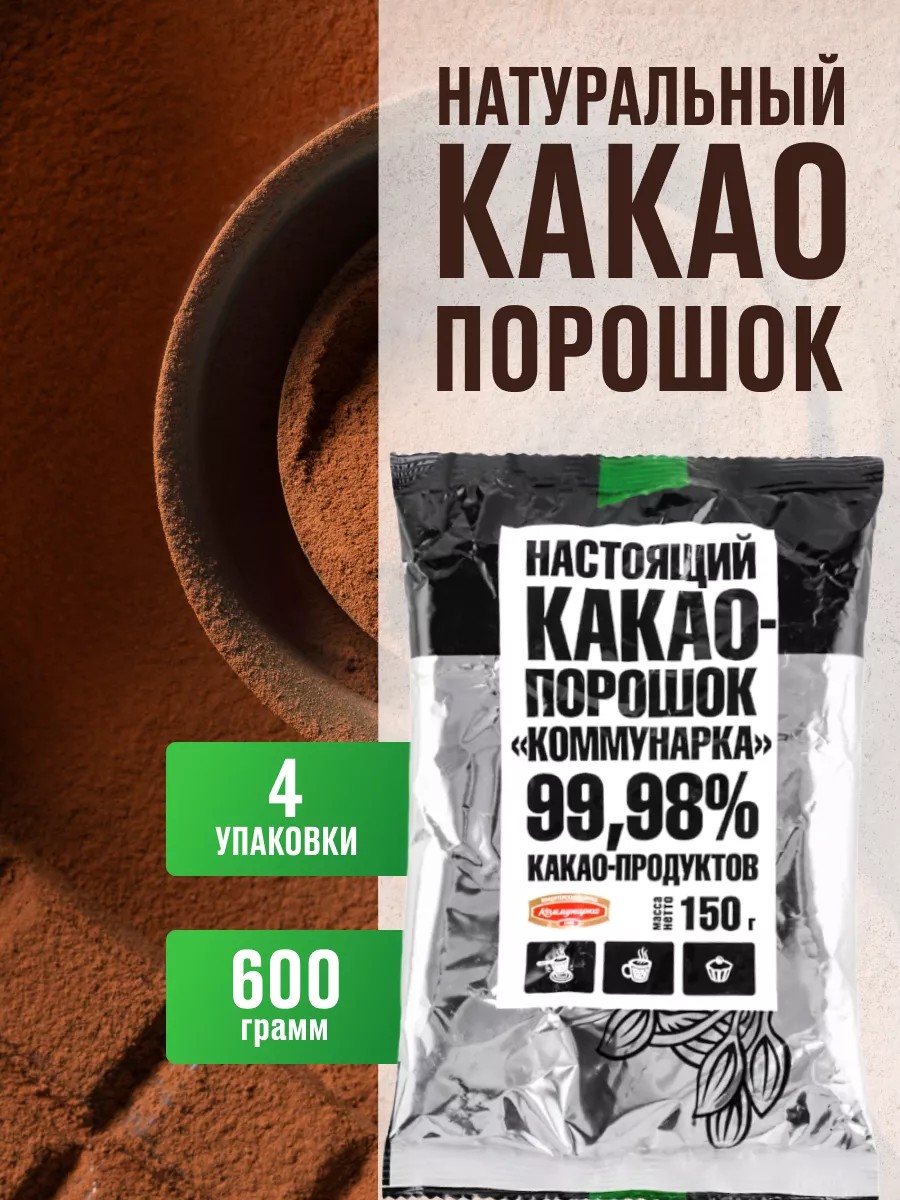| Комплектация | Какао-порошок "Коммунарка" 4 упаковки по 150гр = 600гр |