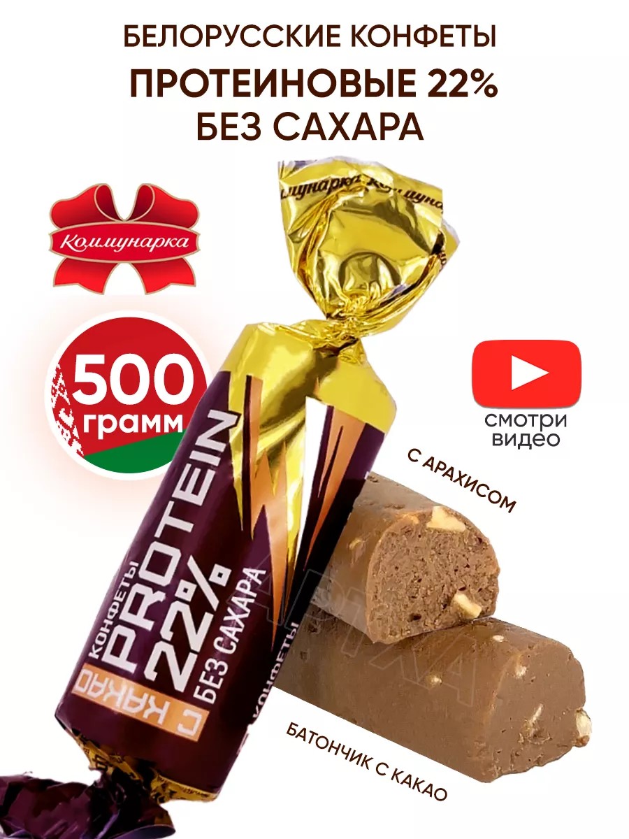 Новинка от белорусской кондитерской фабрики коммунарка - Протеин 22% с какао и арахисом. Невероятно полезные и вкусные конфеты из самого сердца Беларуси, которые производятся без сахара, с новым вкусом.