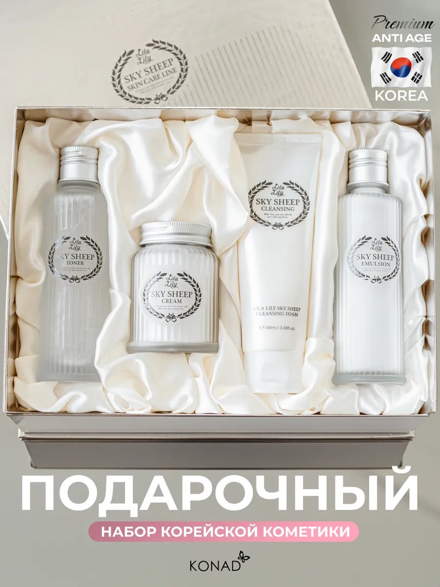 The Konad LILA LILY Sky Sheep Skin Care Line beauty box gift set for women is a gift set consisting of Korean facial cosmetics made with sheep's milk.