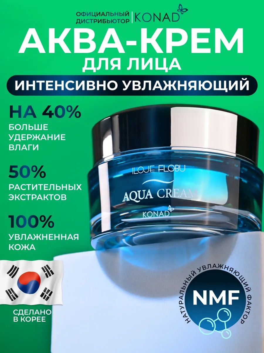 We present Konad iloje Flobu Aqua Cream 50g, a moisturizing face cream containing Natural Moisturizing Factor (NMF). It powerfully retains moisture in the skin, keeping it hydrated throughout the day.