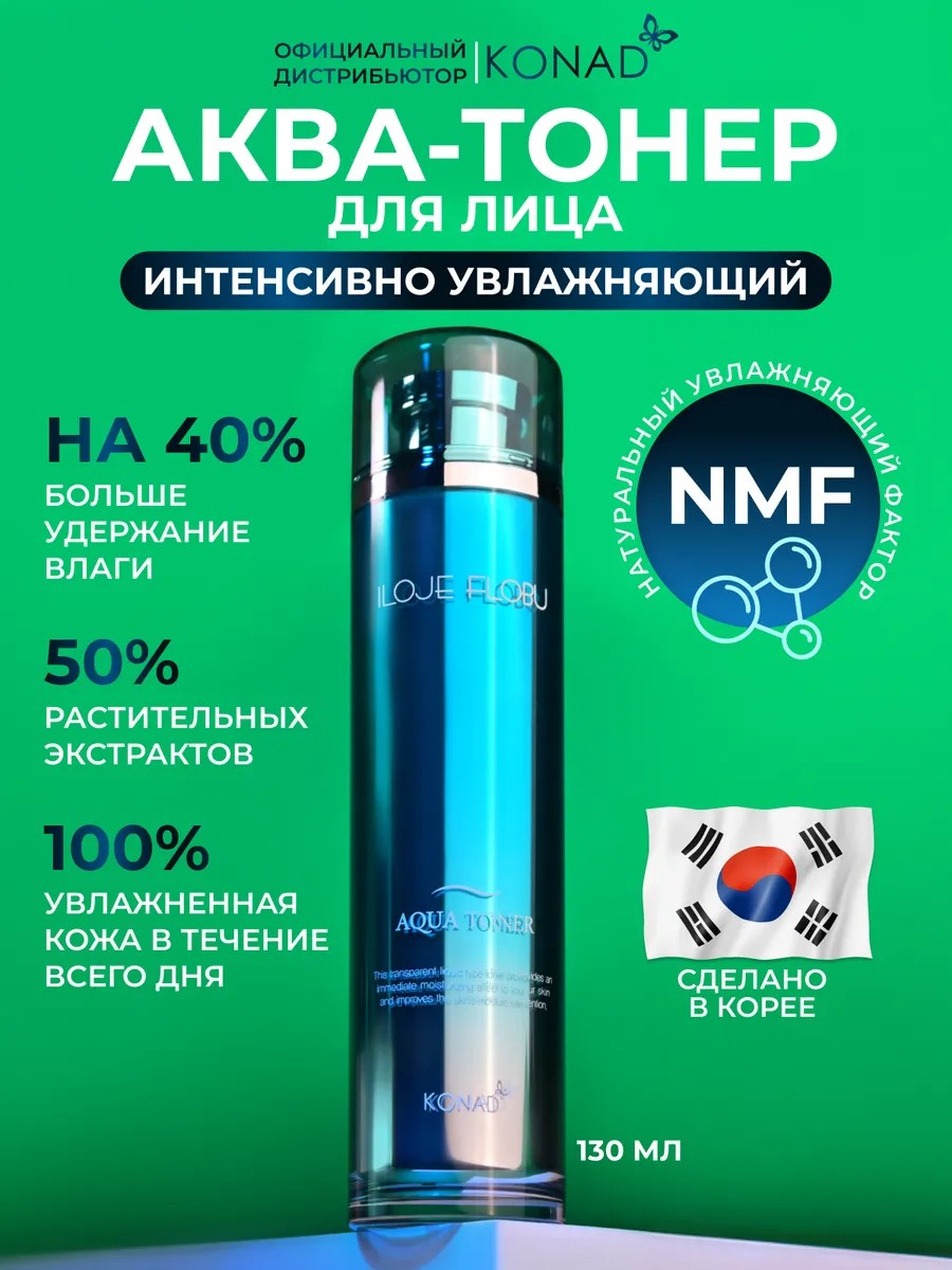 тонер для лица от Konad содержащий натуральный увлажняющий фактор (NMF) Этот лосьон для лица для всех типов кожи ( жирной, нормальной, сухой и комбинированной) оказывает комплексное действие: увлажняет, защищает, освежает и регулирует работу сальных желез. Наш тоник для лица увлажняющий обеспечивает водный баланс кожи. Тоник для лица корея освежает кожу после умывания и мягко обновляет верхний слой. Завершает этап очищения и используется после умывалки для восстановления pH. Экстракт листьев окопника поможет избавиться от подкожных прыщей. Стимулирует сужение пор. Тоник для лица корея помогает освежить и оживить кожу за счет содержащихся в составе экстрактов гамамелиса и жасмина. Экстракт мальвы в составе очищающего тоника для лица сбалансирует водно масляный баланс. Отличный тонер лица увлажняющий разработанный по стандартам Кореи. Тоник для лица очищающий используется как мицеллярная вода для снятия макияжа: удаляет остатки косметики. Корейский тонер для лица защищает от негативного воздействия окружающей среды, убирает следы усталости, дарит здоровый цвет лица и возвращает сияние. Увлажняющий тоник для лица омолаживает, повышает упругость и эластичность, укрепит кожный барьер дермы. Аква-Тоник - уходовая косметика, которая прекрасно гидрирует кожу, доставляет влагу в глубокие слои эпидермиса. Тоник для лица от прыщей делает кожу мягкой и готовой к нанесению более плотных составов — сывороток, эмульсий, кремов. Влажная кожа намного эффективнее впитывает любые составы, она намного быстрее и качественнее принимает в себя все витамины.