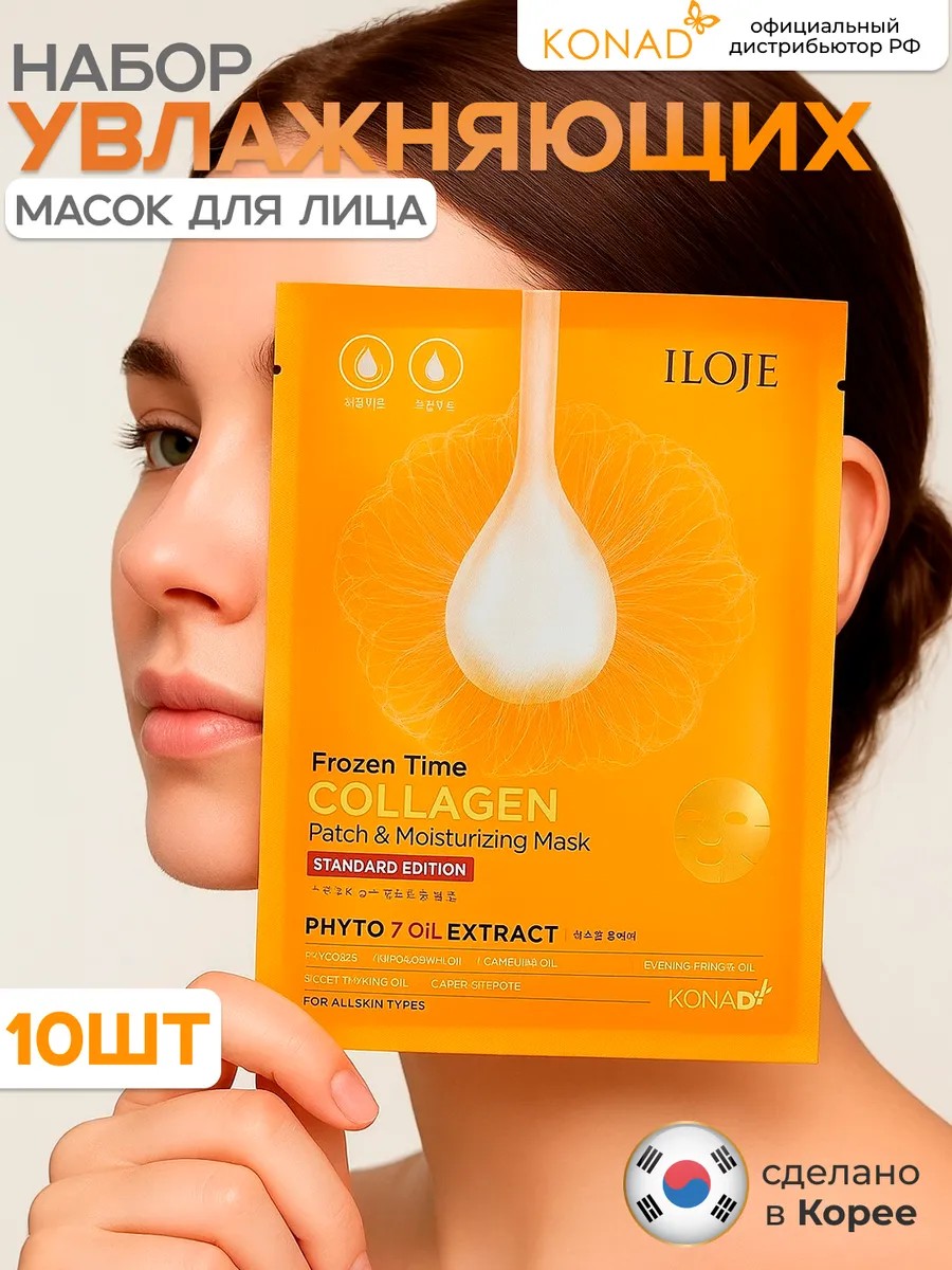 ILOJE Frozen Time Moisturizing Patch & Mask SE Корейская Тканевая увлажняющая маска патчи для лица, 10 шт.