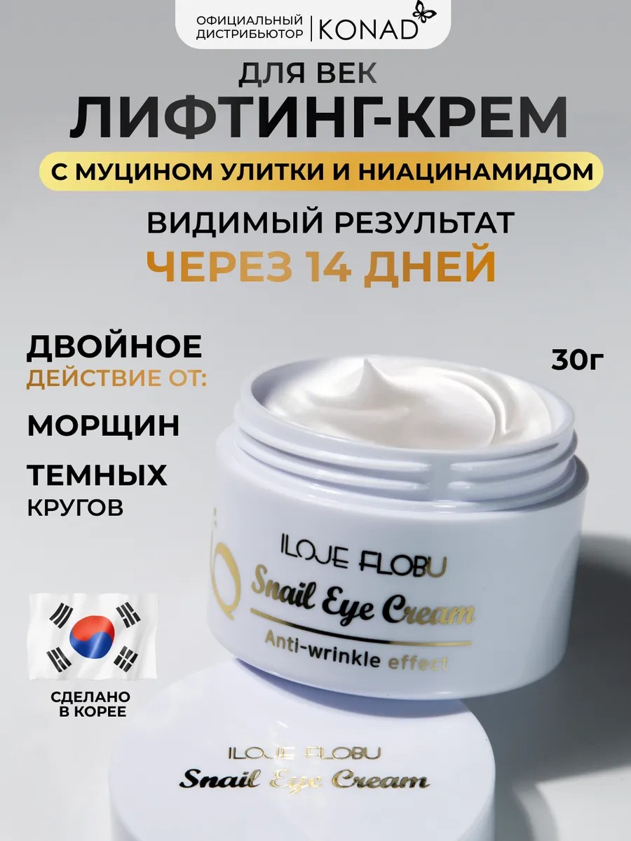 Крем для век Konad iloje Flobu snail eye cream двойного действия, который создан для борьбы с признаками старения и обладает осветляющим эффектом.