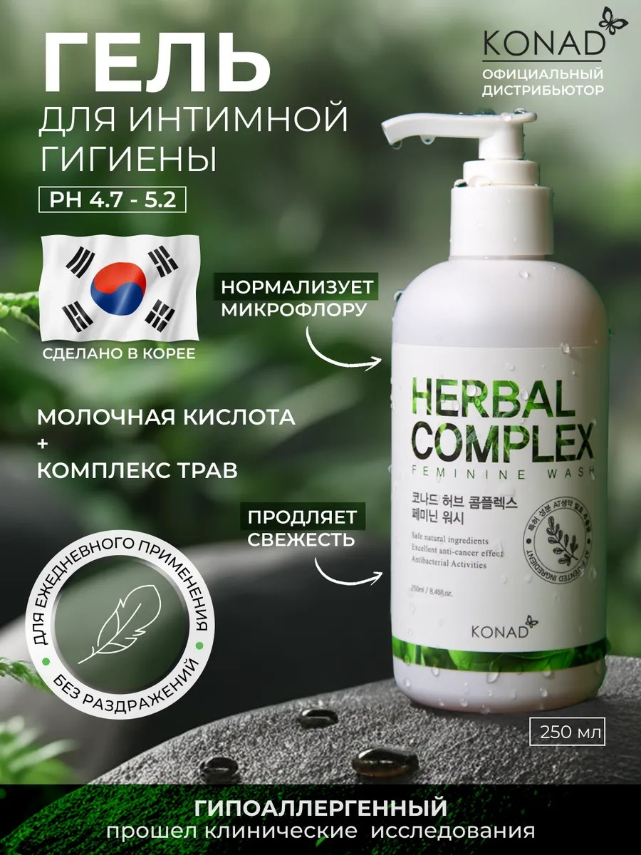 KONAD Herbal Complex Femine Wash помогает женщинам следить за чистотой и здоровьем зоны бикини. Гель для интимной гигиены от запаха освежит и защитит чувствительную, хрупкую и драгоценную область женского тела с помощью экологического состава. Ферментация в качестве предварительной обработки уменьшает размер молекул и улучшает текстуру продукта, что способствует впитыванию кожей. Кроме того, удаляет различные токсины без побочных эффектов и раздражения. При ежедневном использовании избавит от неприятного запаха.