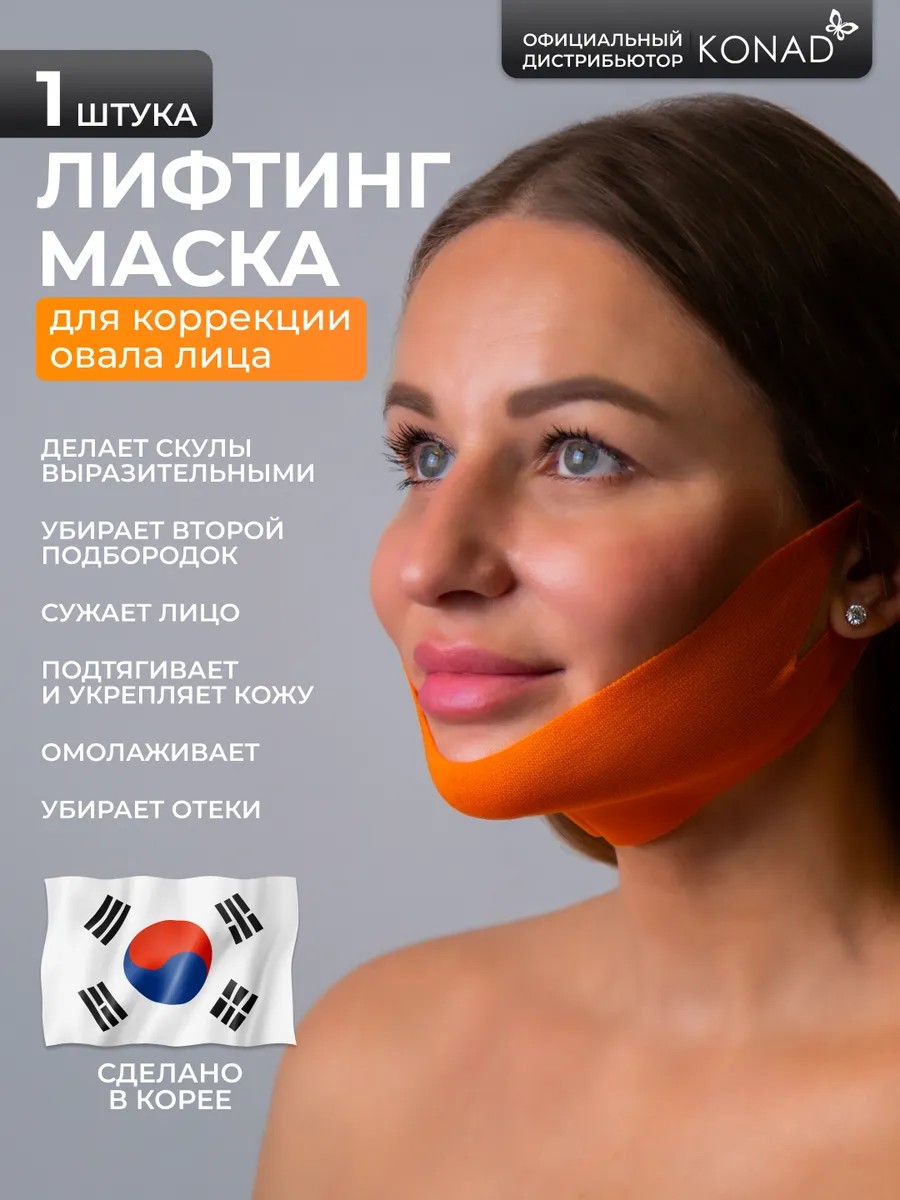 V - маска для лифтинга и моделирования линии скул - углы джоли. Особый продукт от марки косметики Конад Корея оригинал для домашнего косметического ухода с эффектом профессионального метода, который поможет заострить и сгладить нижнюю треть не выходя из дома. Тейп прекрасно повышает эластичность и тургор, а так же увлажняет и придает сияние. Тканевая маска для лица имеет мощный лимфодренажный и компрессионный результат. От отеков лица. Коллагеновая маска корсет для подтяжки контура лица - Бандаж разглаживает морщины, восстанавливает травмированную дерму, смягчает воспаления. Пока вы отдыхаете или работаете, защитная повязка увлажняющая глубоко проникает в derma, делая ее гладкой, упругой и бархатной на ощупь и подтягивает контур. Mаска бандаж помогает бороться с гравитационным птозом. Уже после первого раза применения вы увидите омоложение, цвет кожи выравнивается, становится однородным и подтянутым.