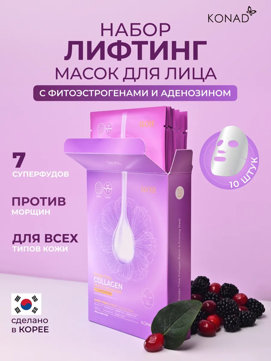 ILOJE Frozen Time Firming Patch & Mask SE Тканевая маска KONMIKS-1 ля лица подтягивающая коллаген, 10 шт. Тканевая маска для лица в наборе 10 штук обеспечит полноценный курс в домашних условиях. Экономьте на косметологе, преображаясь изо дня в день.