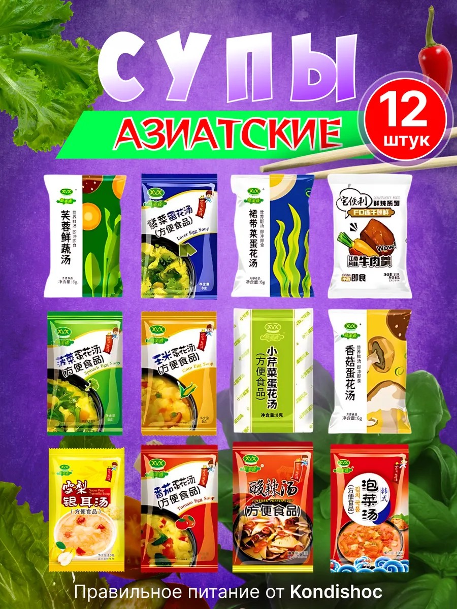 Китайские супы порадуют разнообразием сублимированных продуктов, которые добавляют витаминную ценность и делают его ещё более питательным.