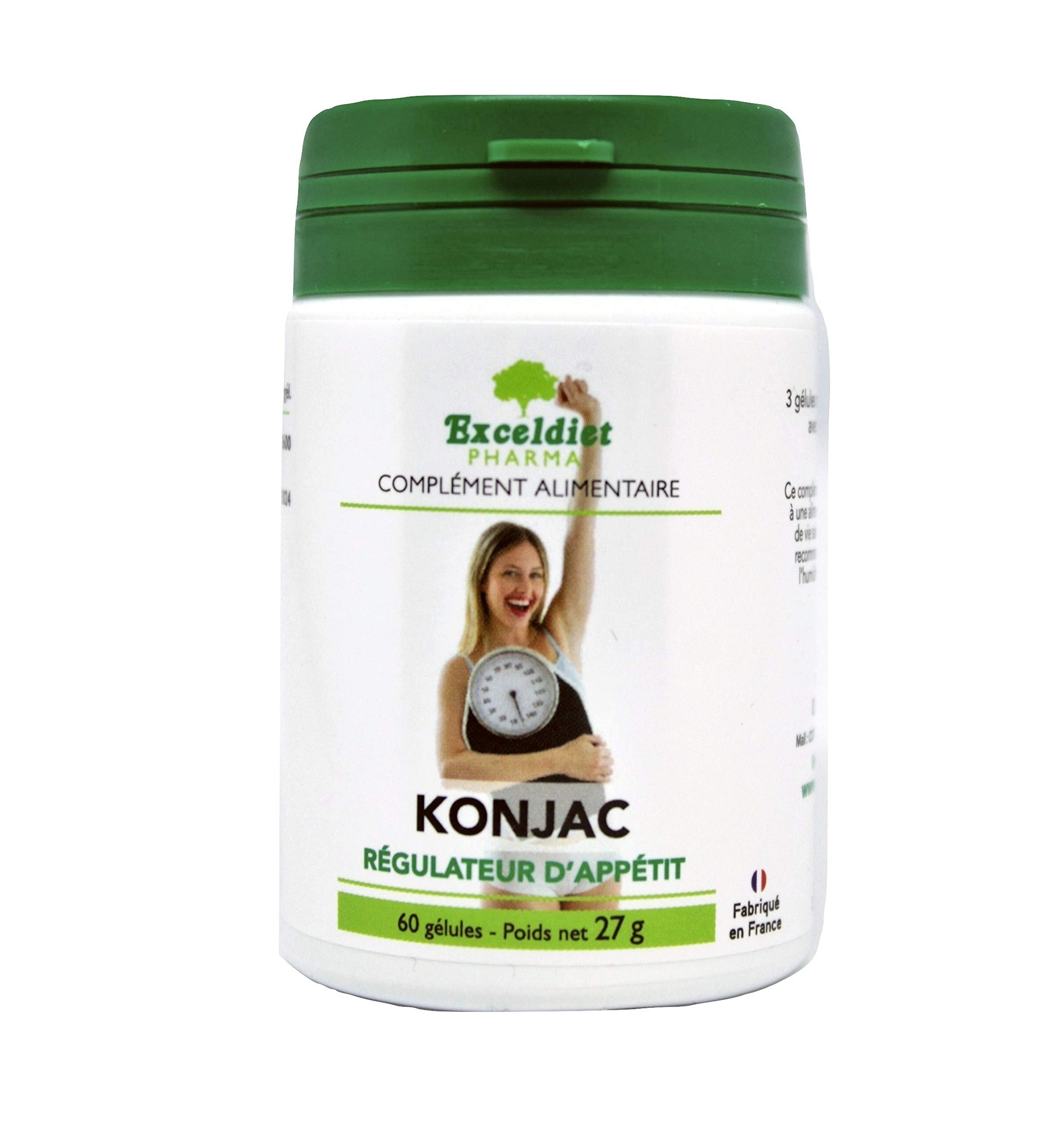 Glucomannan, consumed as part of a low-calorie diet, contributes to weight loss. Konjac promotes intestinal transit and helps prevent constipation. Konjac is a rich source of water-soluble fiber. Taken before meals with water, these fibers bind to water in the stomach and small intestine to form a gelatinous, viscous mass that slows the absorption of sugars. It also induces a feeling of satiety. Konjac is said to be known for its appetite suppressant action, ideal for a weight-loss diet, thanks to its fiber glucomannan, which turns out to be a gelatinous mass, which, once placed in contact with water, sees its volume multiply by seventeen times its initial size.Le glucomanane, consommé dans le cadre d'un régime hypocalorique contribue à la perte de poids. le konjac favorise le transit intestinal et contribue à éviter la constipation. Le konjac est une source riche en fibres hydrosolubles. Prises avant les repas avec de l'eau, ces fibres se lient à l'eau dans l'estomac et l'intestin grêle pour former une masse gélatineuse, visqueuse qui ralentit l'absorption des sucres. Elle induit également une sensation de satiété. Le Konjac serait réputé pour son action coupe-faim idéal dans un régime pour perdre du poids, grâce à sa fibre le glucomannane qui se révèle être une masse gélatineuse, qui une fois mise au contact de l'eau, voie son volume se multiplier par dix-sept fois sa taille initiale.