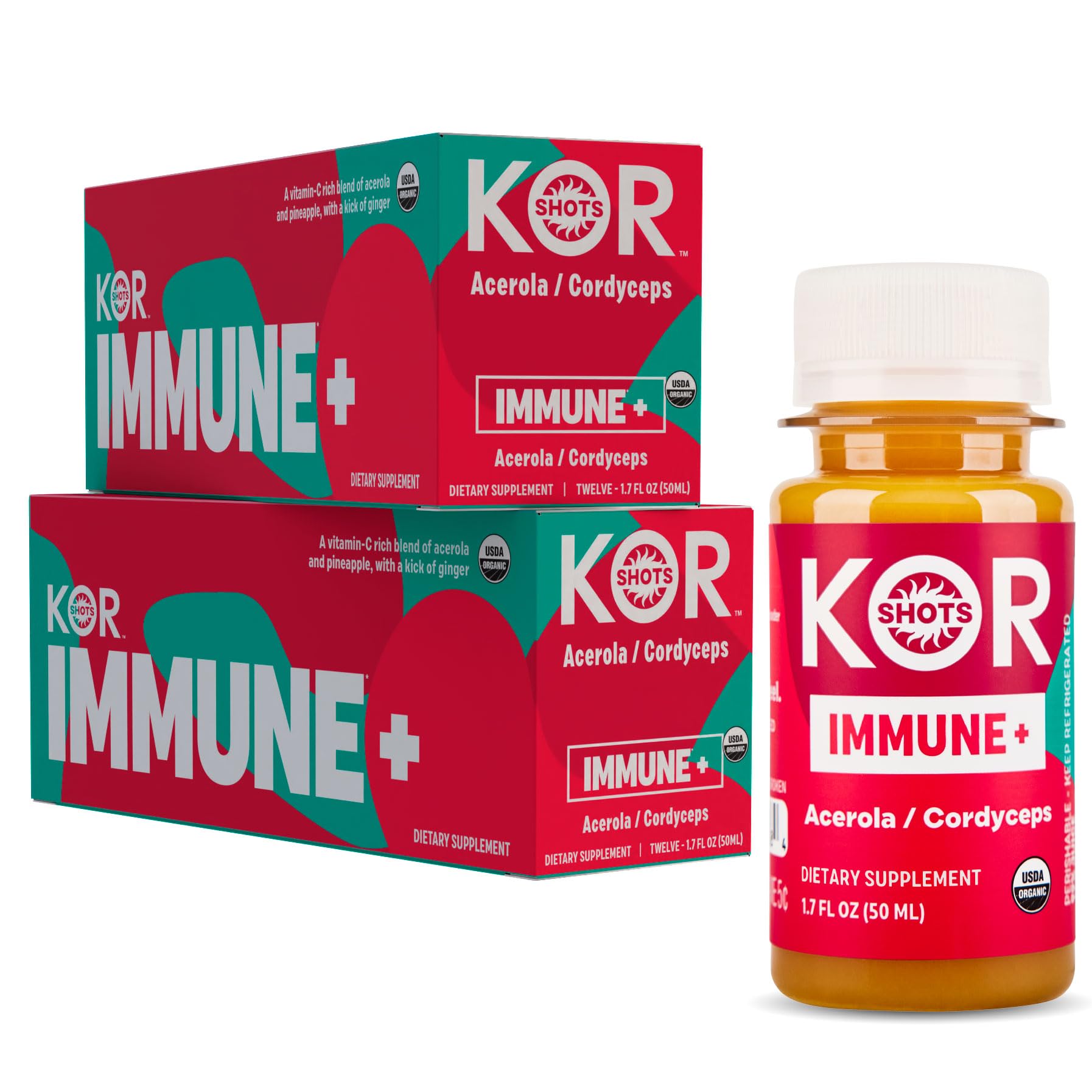 Kor Shot Acerola Ginger and Cordyceps Shot - 24 Pack x 1.7 Fl Oz - Immune Plus - Immune System Booster - 533% DV of Vitamin C - USDA Certified Organic - Dietary Supplement Immune + Acerola